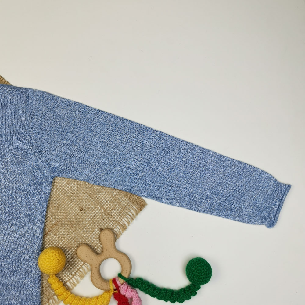 بلوز بافت آستین بلند برند لوپیلو جلو دکمه دار آبی رنگ – 2 تا 4 سال