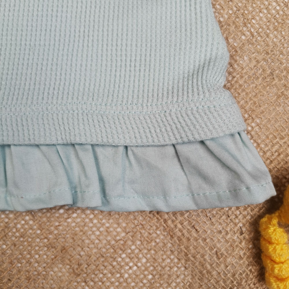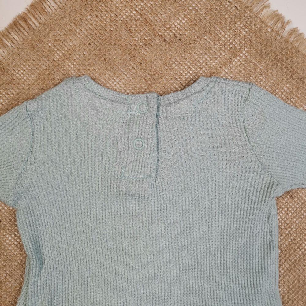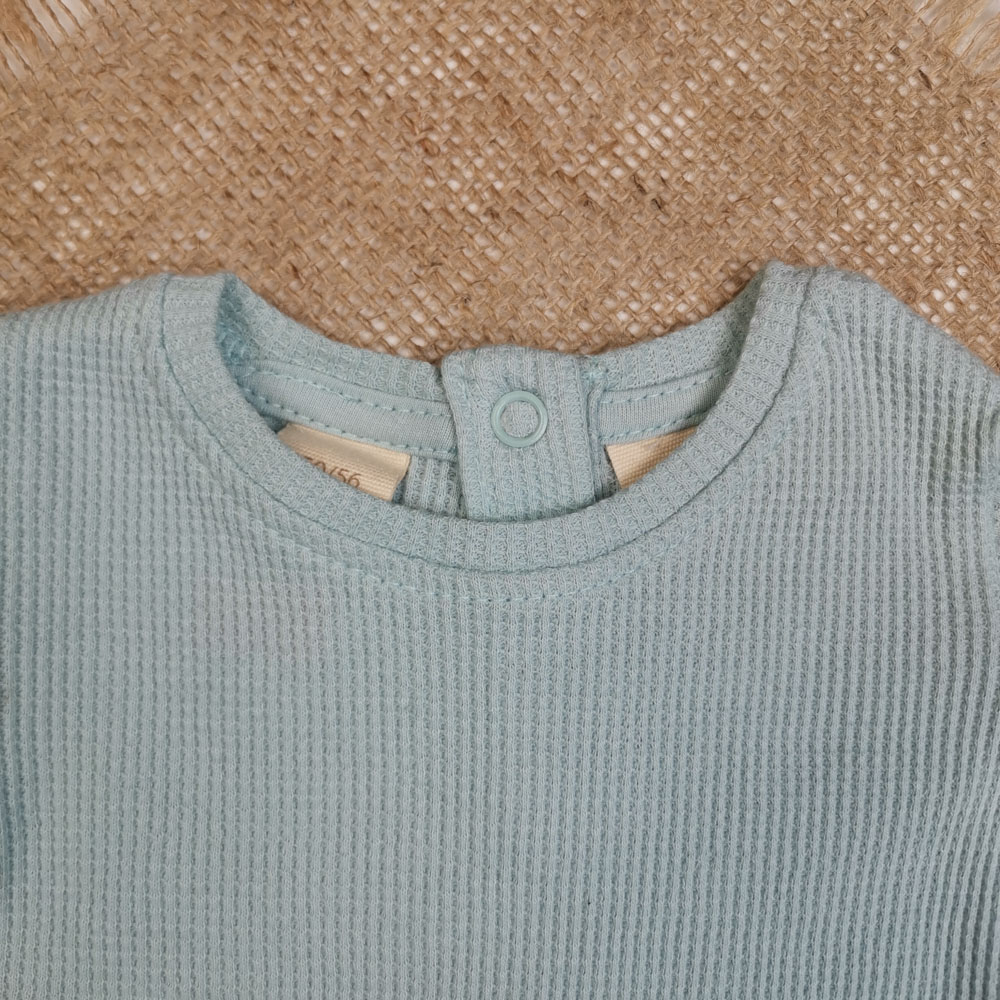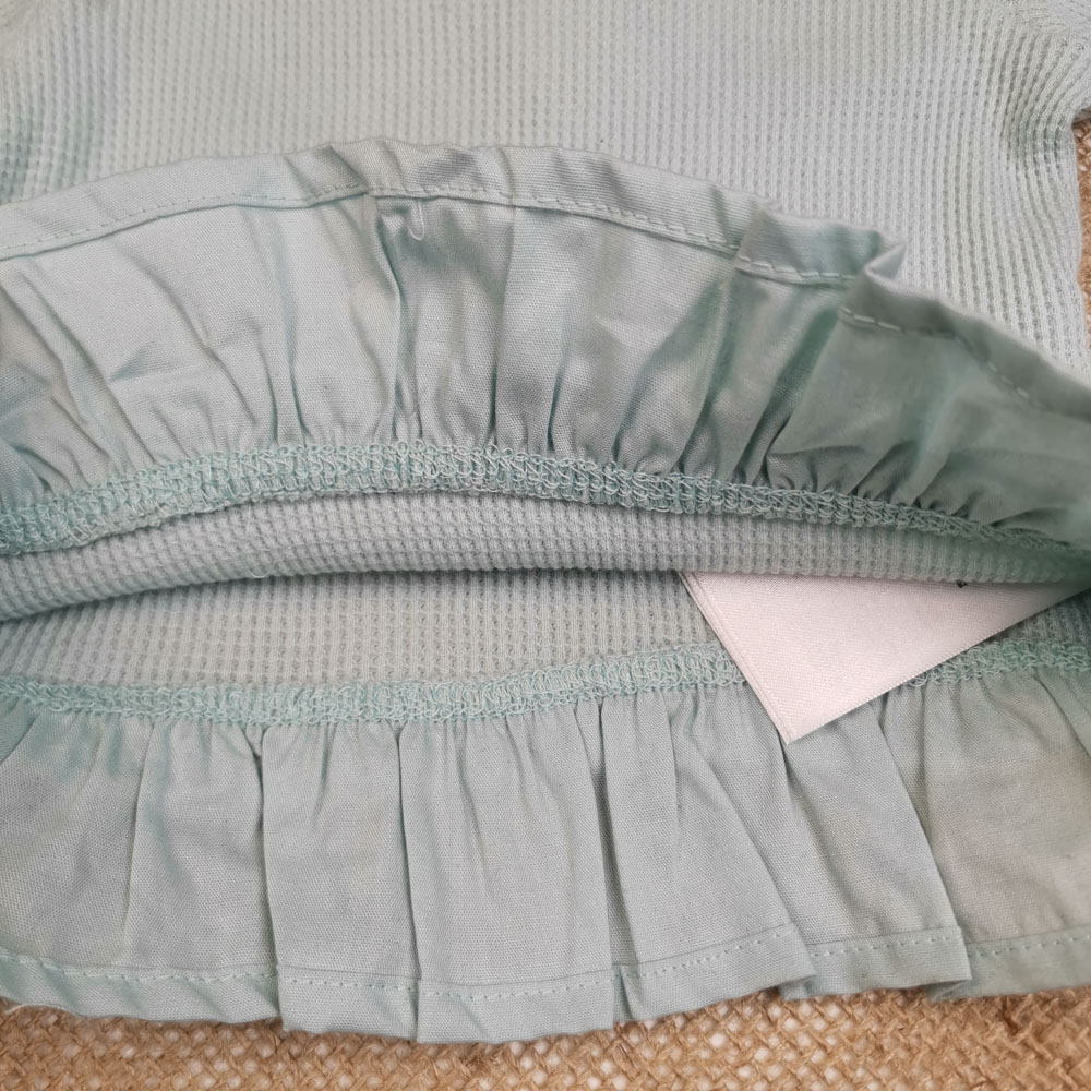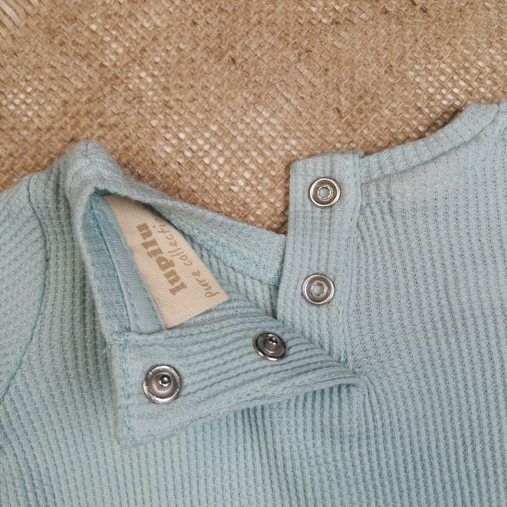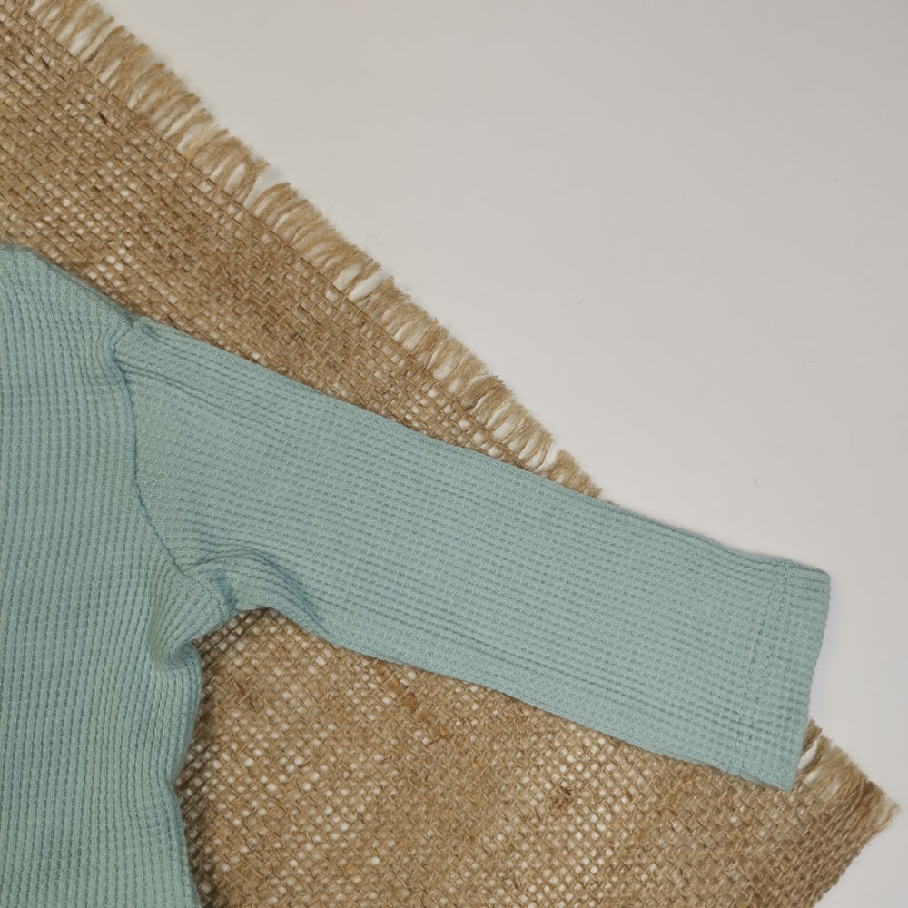 بلوز بیسکوییتی نوزادی دخترانه آستین بلند برند لوپیلو طرح پرک پرکی پشت دکمه دار سبز صابونی رنگ – 0 تا 2 ماه