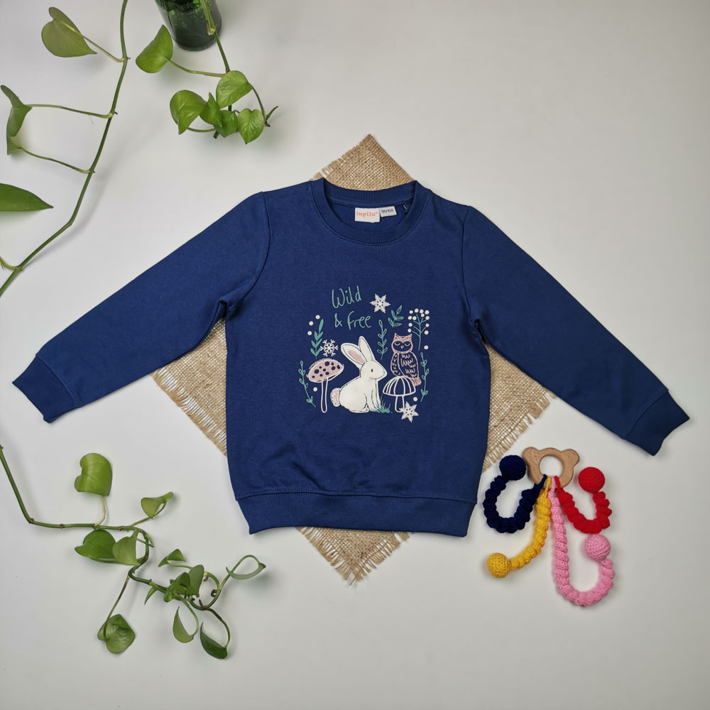 بلوز توکرکی دخترانه آستین بلند برند لوپیلو طرح خرگوش و جغد سرمه ای رنگ – 2 تا 4 سال