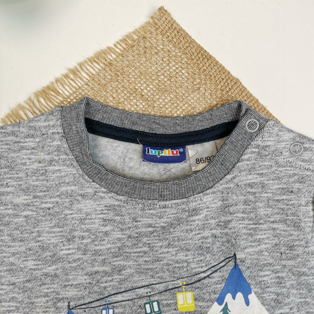 بلوز توکرکی نوزادی آستین بلند برند لوپیلو طرح کوهستان طوسی رنگ – 12 تا 24 ماه