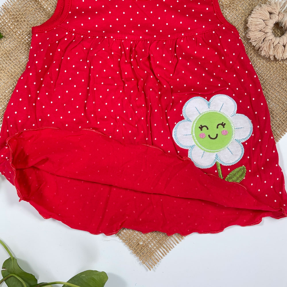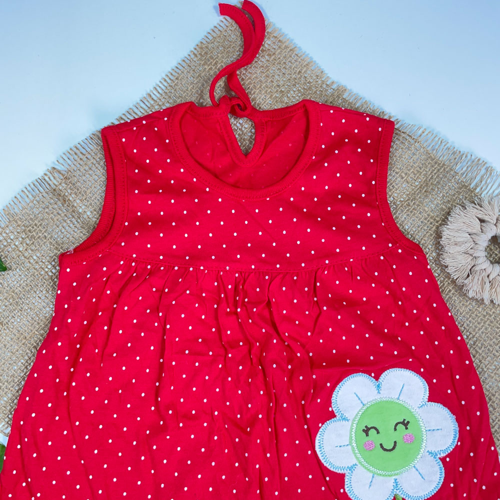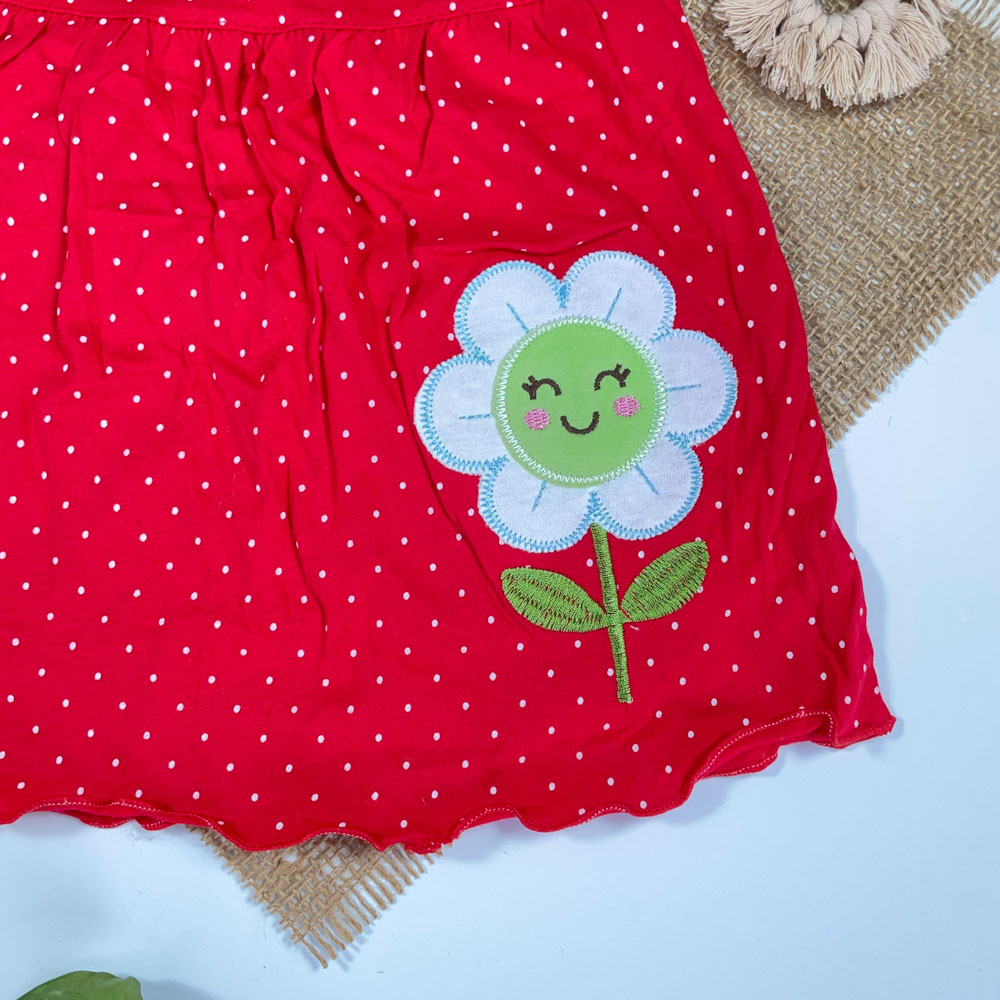 بلوز دامنی نوزادی دخترانه آستین کوتاه طرح توپلی توپکی گل دار قرمز رنگ – 3 تا 6 ماه