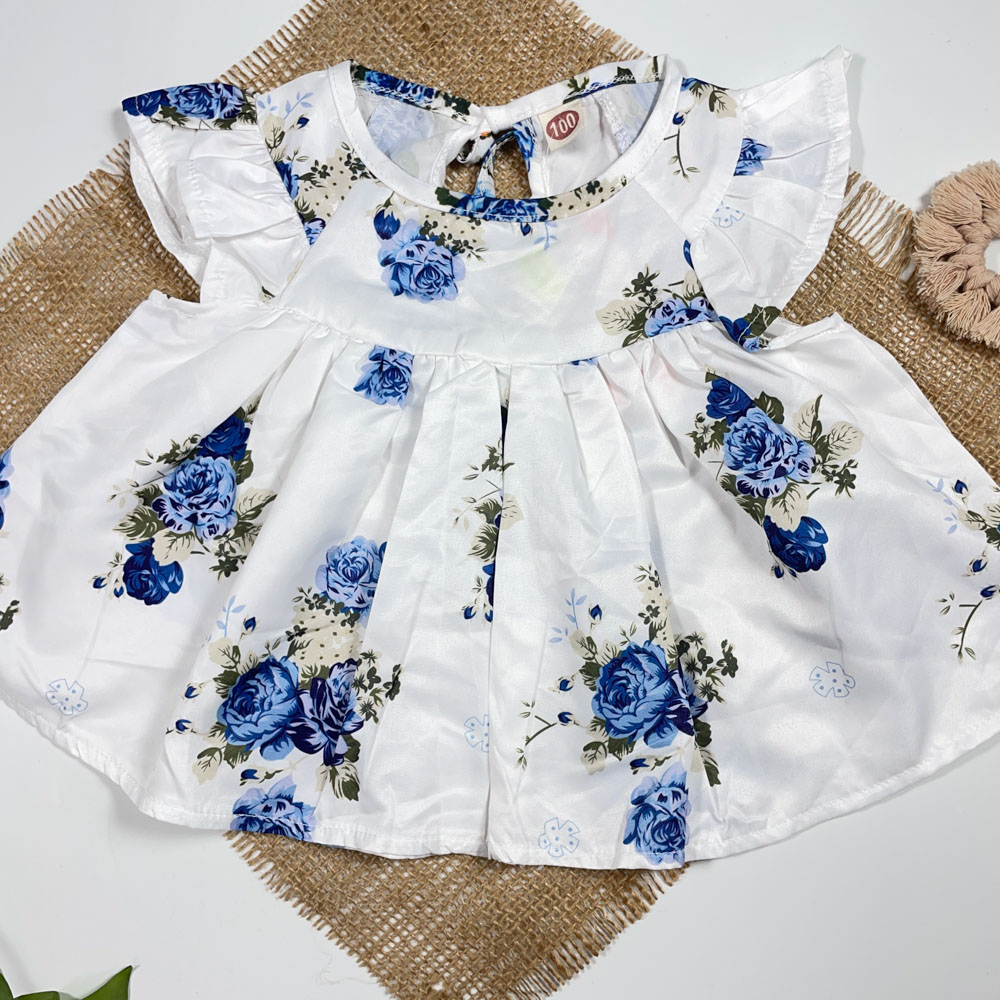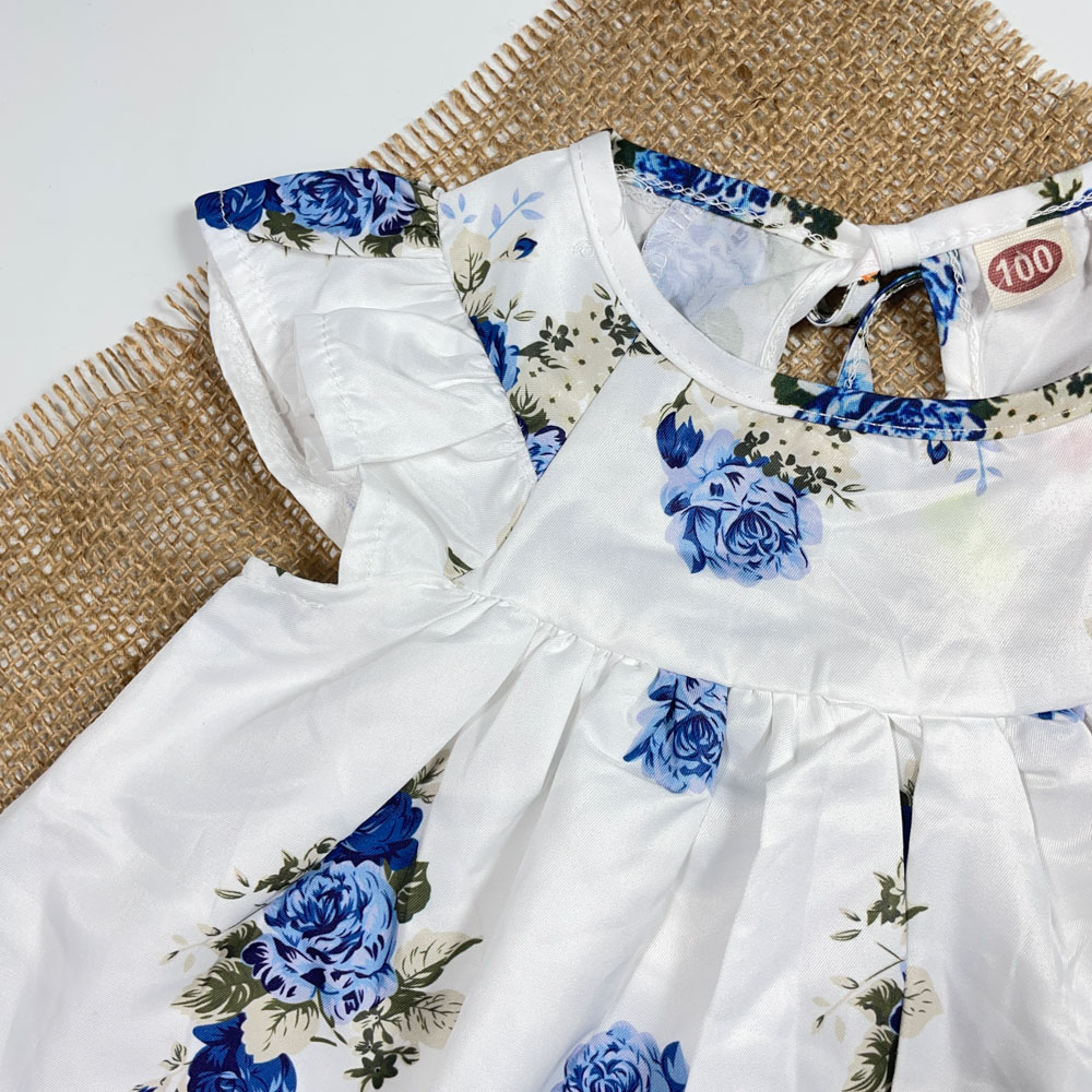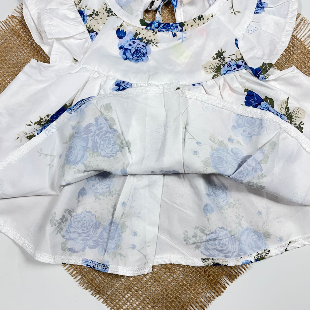 بلوز دامنی نوزادی دخترانه آستین کوتاه طرح گل دار سفید رنگ – 3 تا 6 ماه