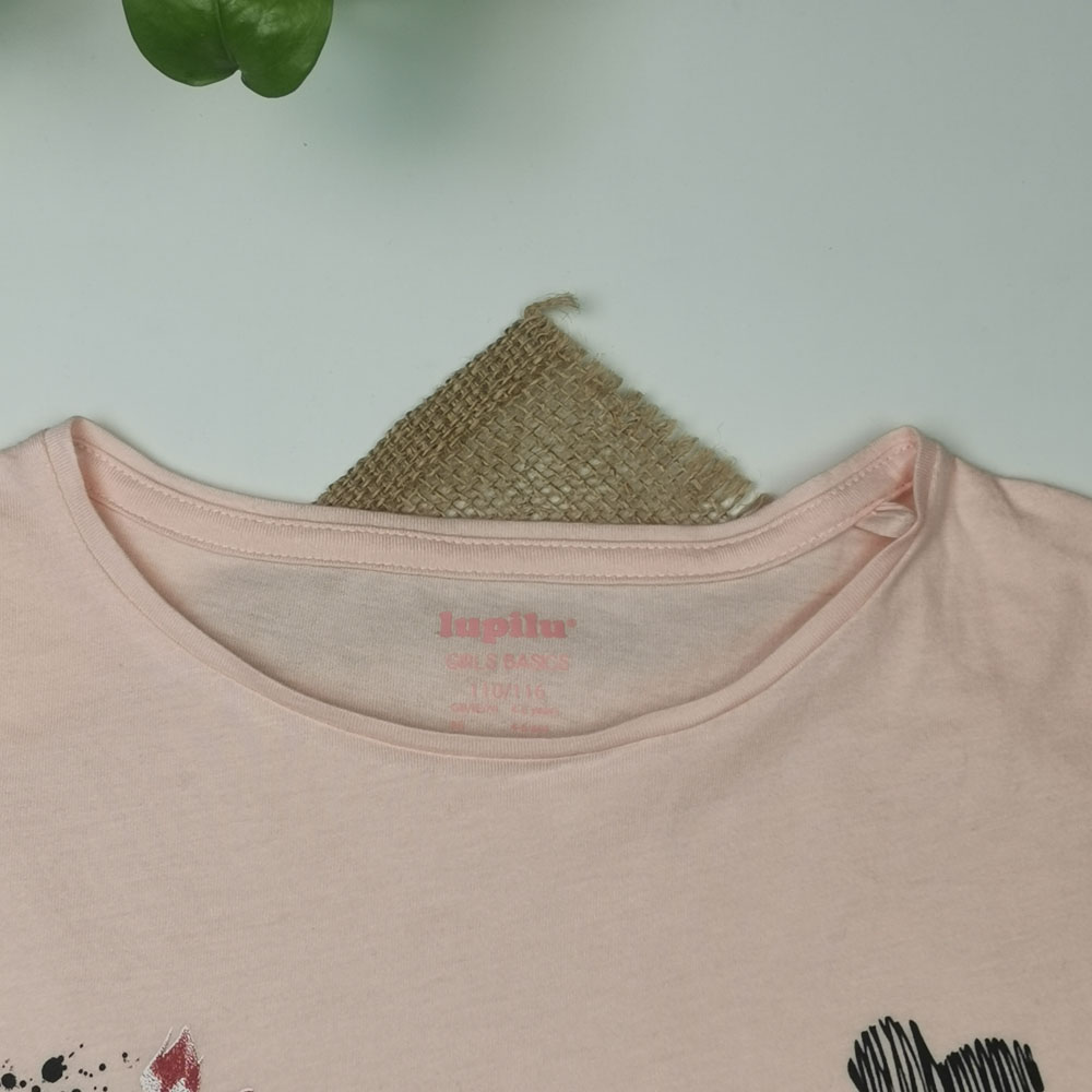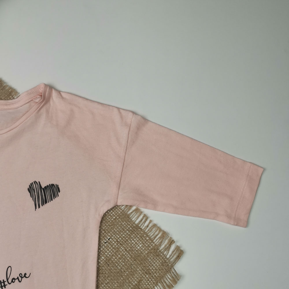 بلوز دخترانه آستین بلند برند لوپیلو طرح گل دار نوشته دار گلبهی رنگ – 4 تا 6 سال
