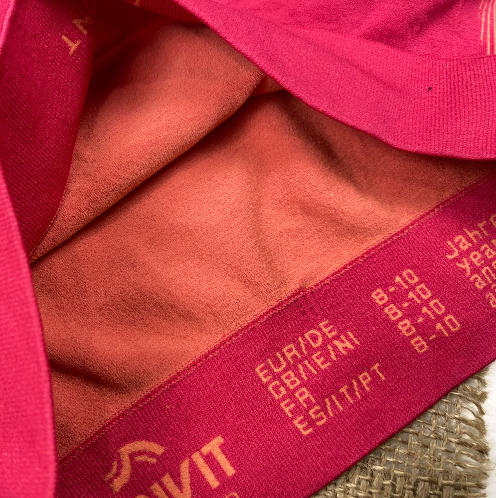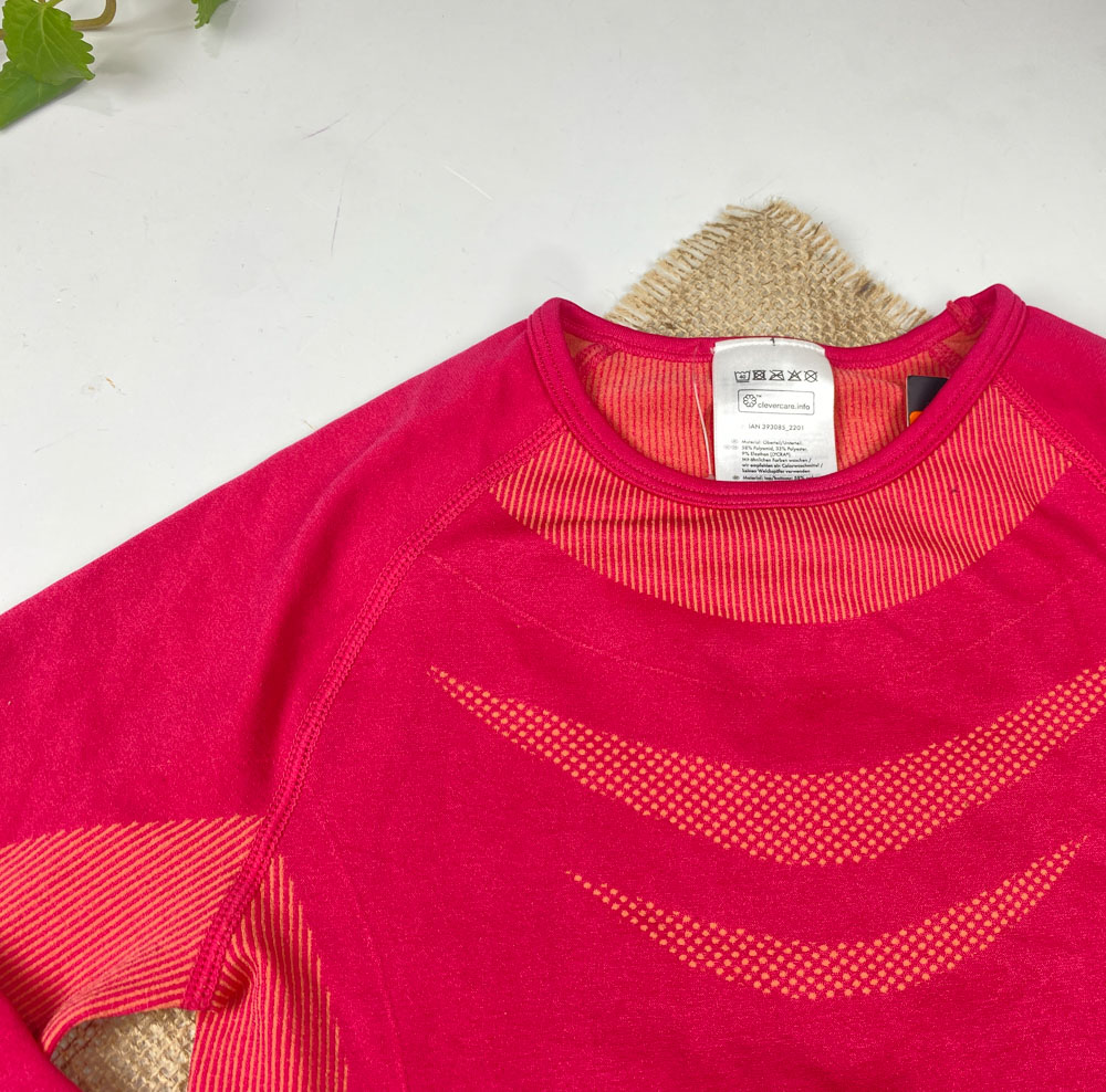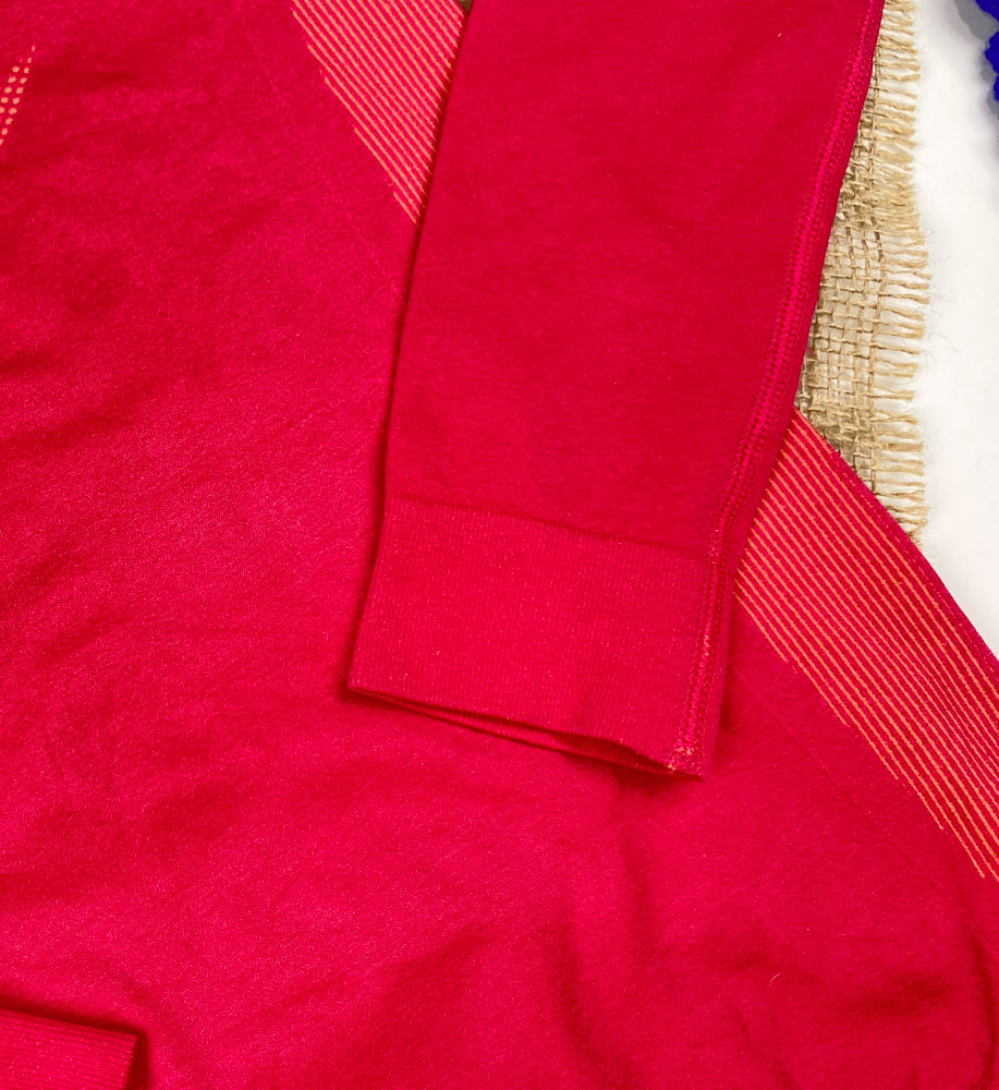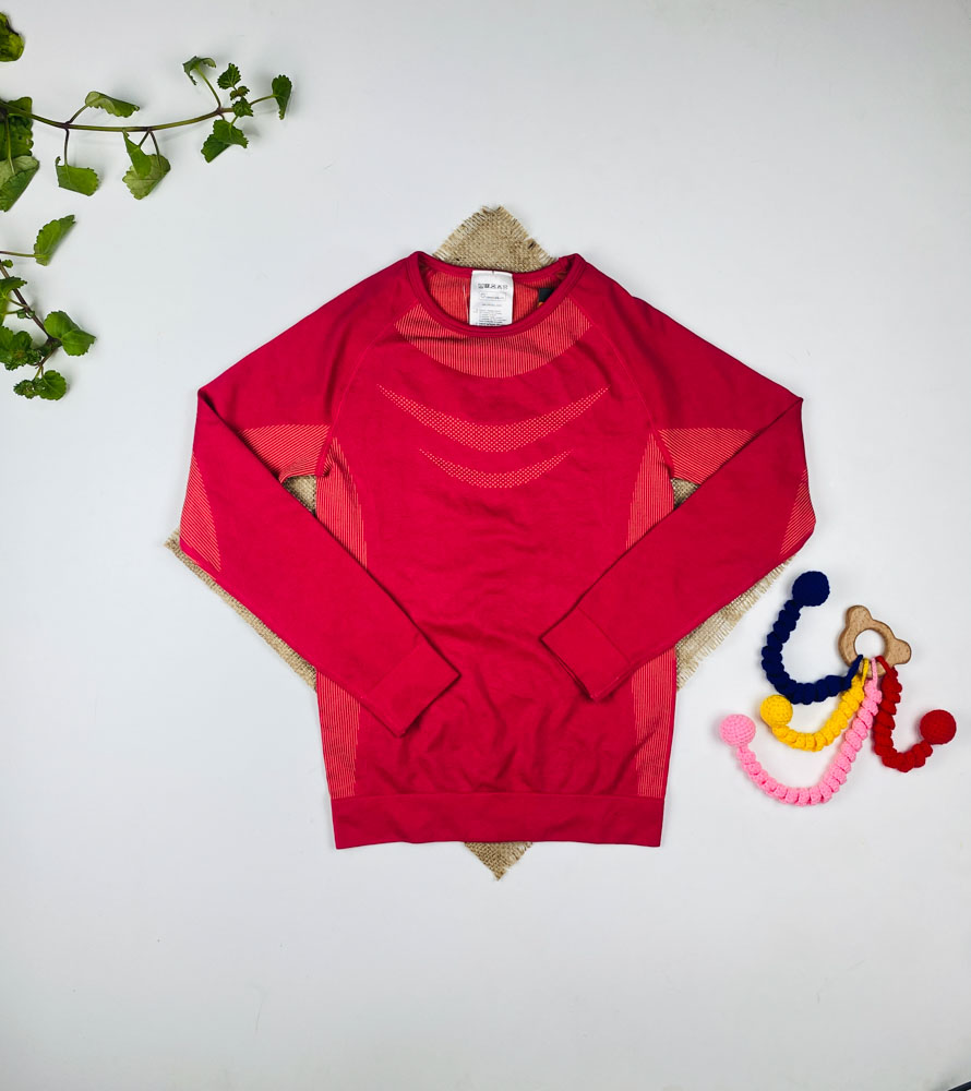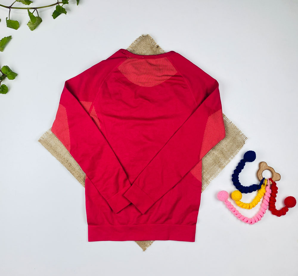 بلوز دخترانه آستین بلند طرح اشکال راه راه یقه گرد سرخابی رنگ – 8 تا 10 سال