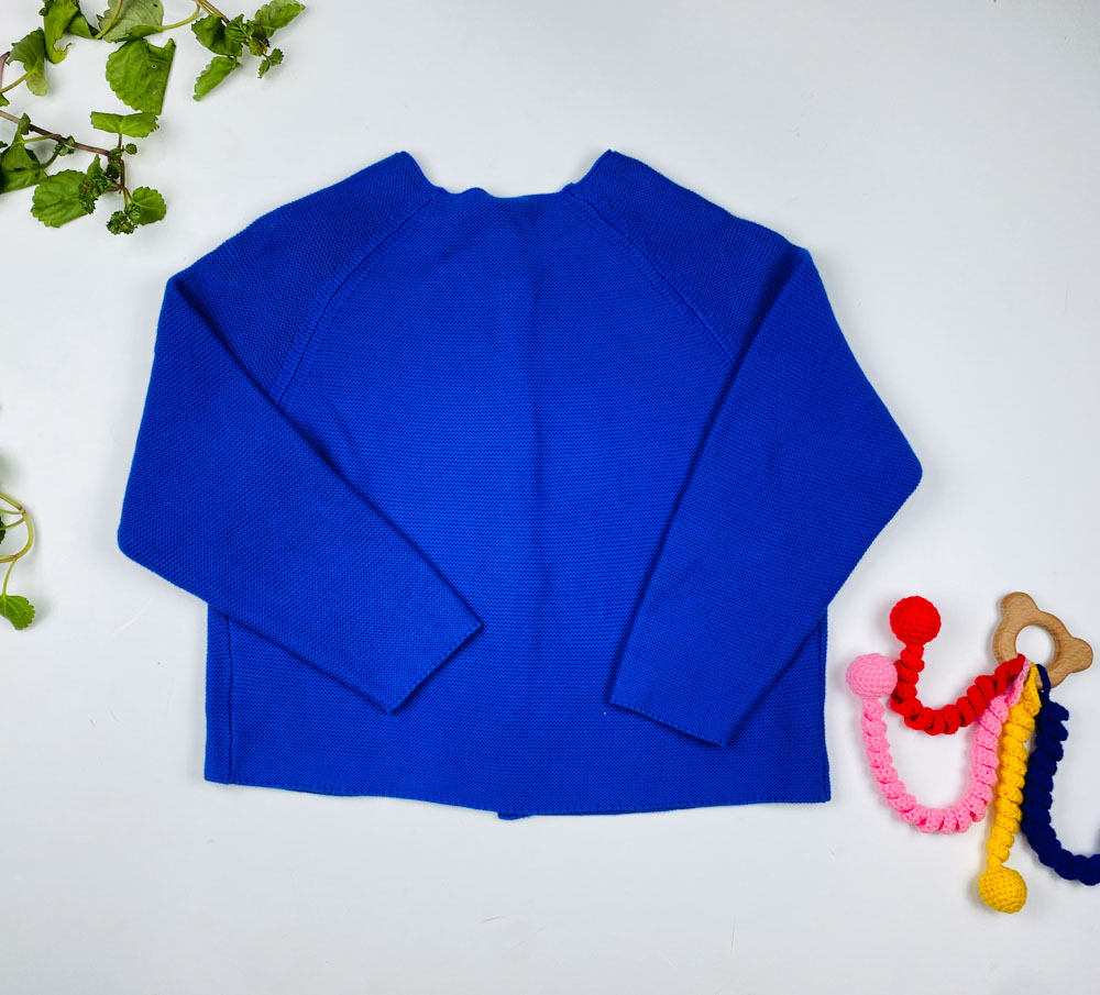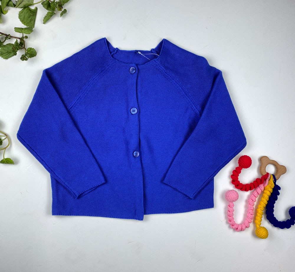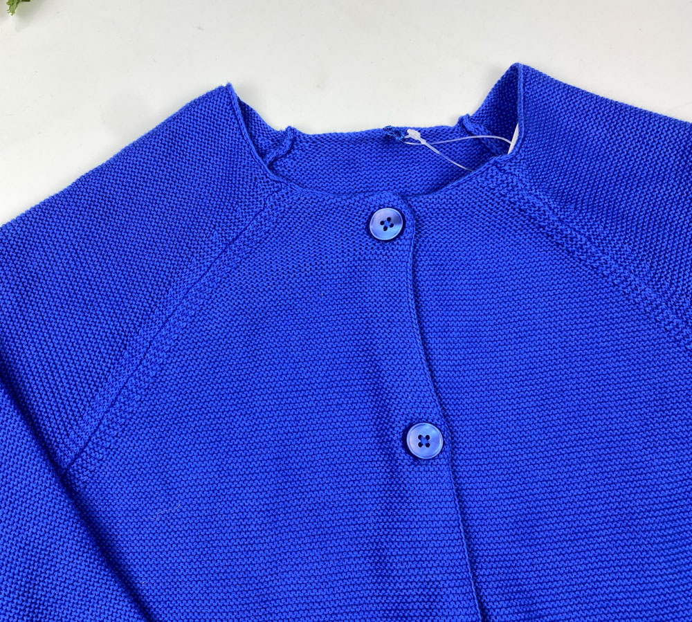 بلوز دخترانه آستین بلند طرح جلودکمه ای یقه گرد ابی کاربنی رنگ – 6 تا 7 سال