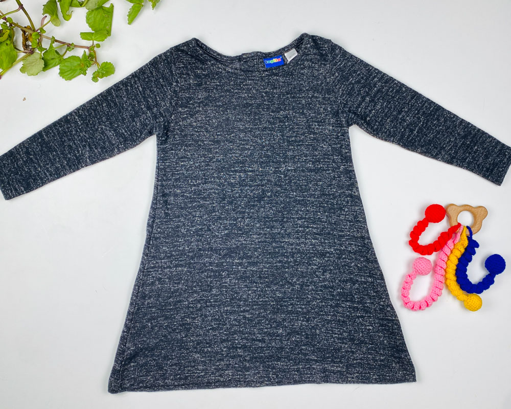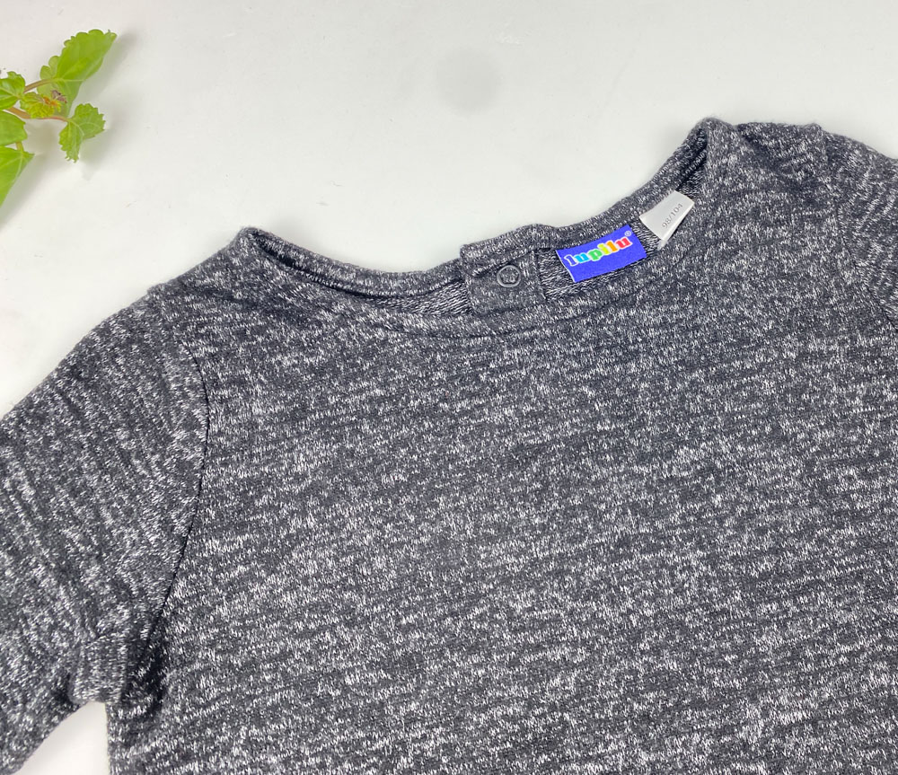 بلوز دخترانه آستین بلند طرح ساده یقه گرد ذغالی رنگ – 2 تا 4 سال