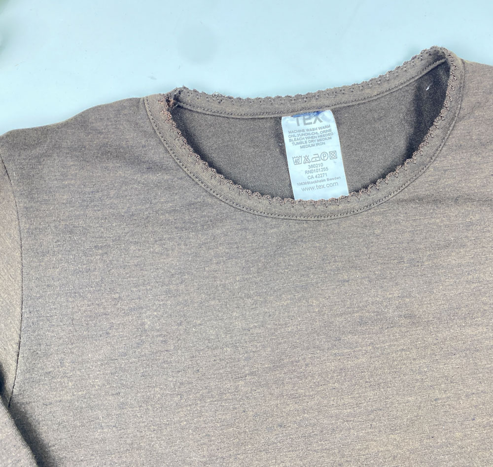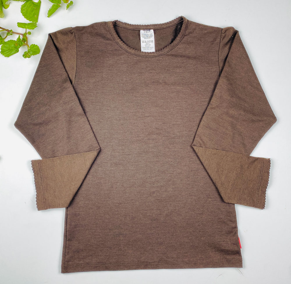 بلوز دخترانه آستین بلند طرح ساده یقه گرد قهوه ای رنگ – 10 تا 12 سال