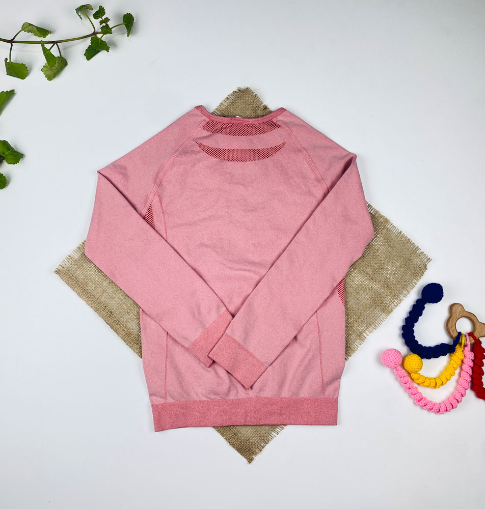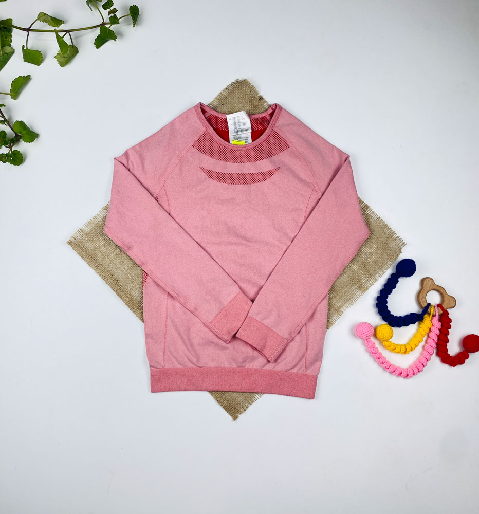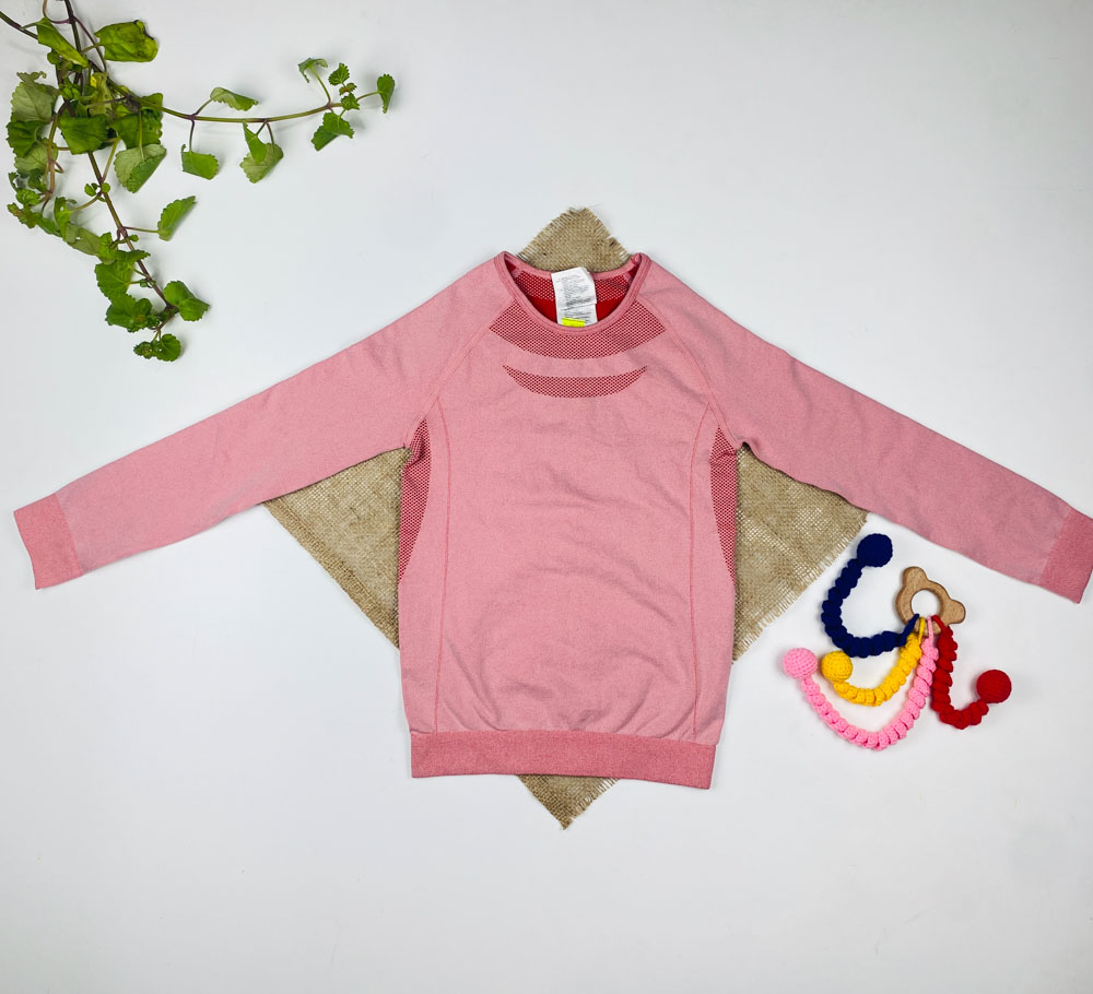 بلوز دخترانه آستین بلند طرح نقطه نقطه یقه گرد صورتی کمرنگ – 8 تا 10 سال