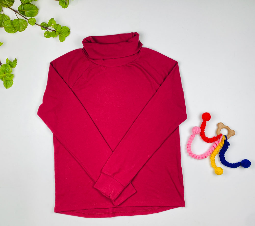 بلوز دخترانه آستین بلند طرح یقه اسکی ساده گوجه ای رنگ – 12 سال