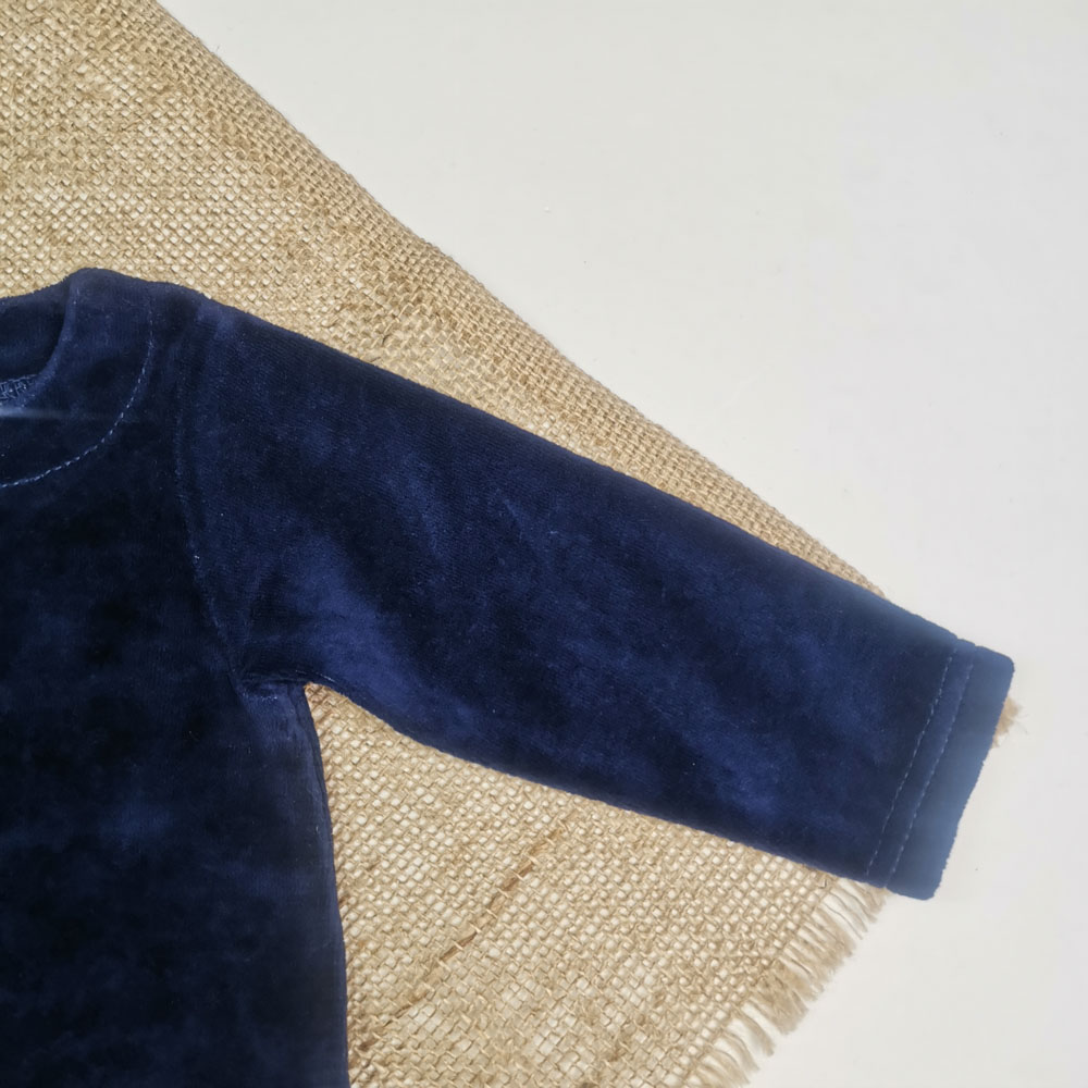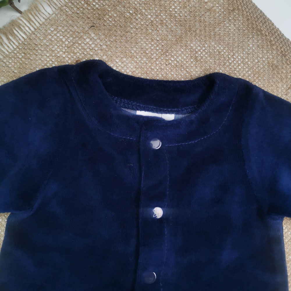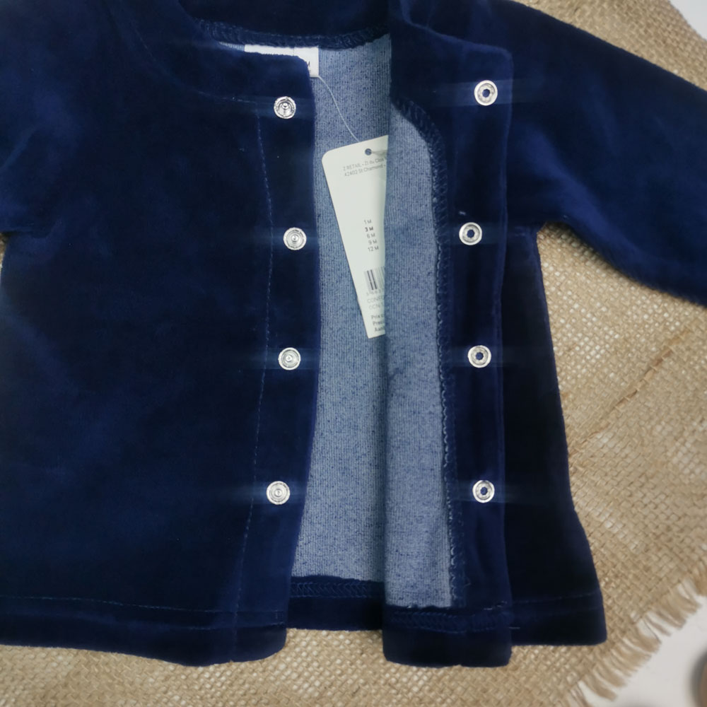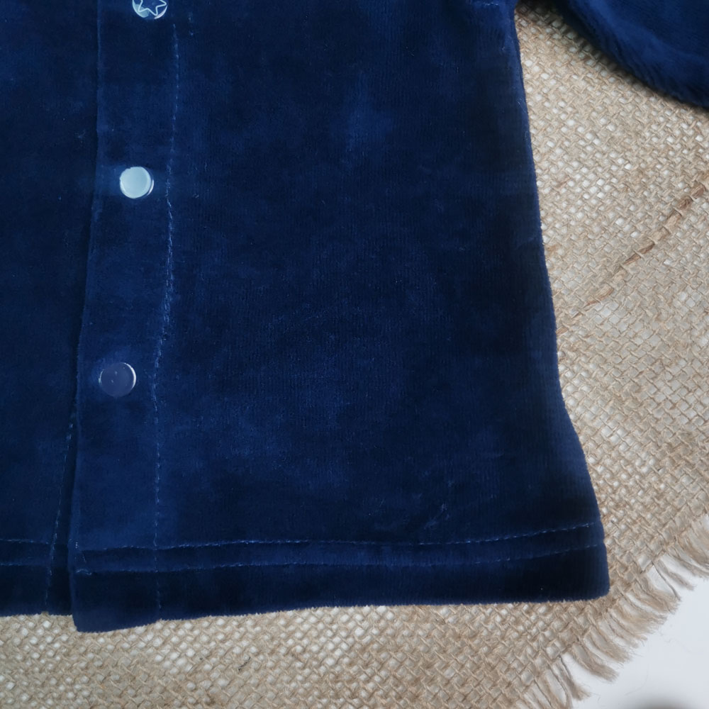 بلوز مخمل نوزادی آستین بلند جلو دکمه دار سرمه ای رنگ – 3 ماه