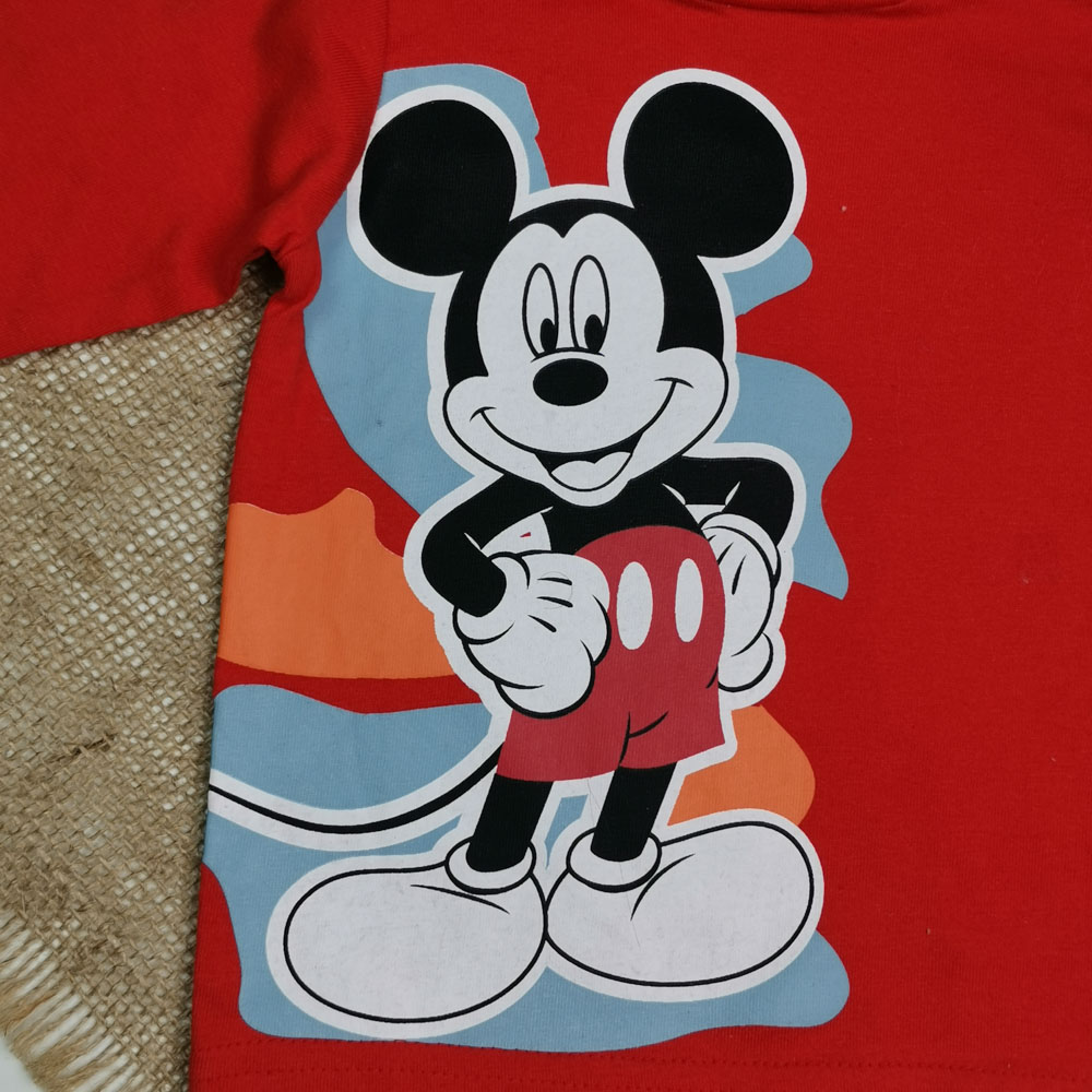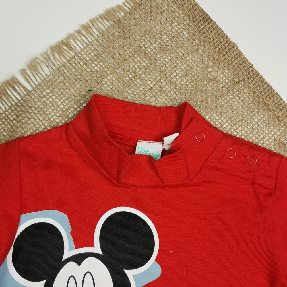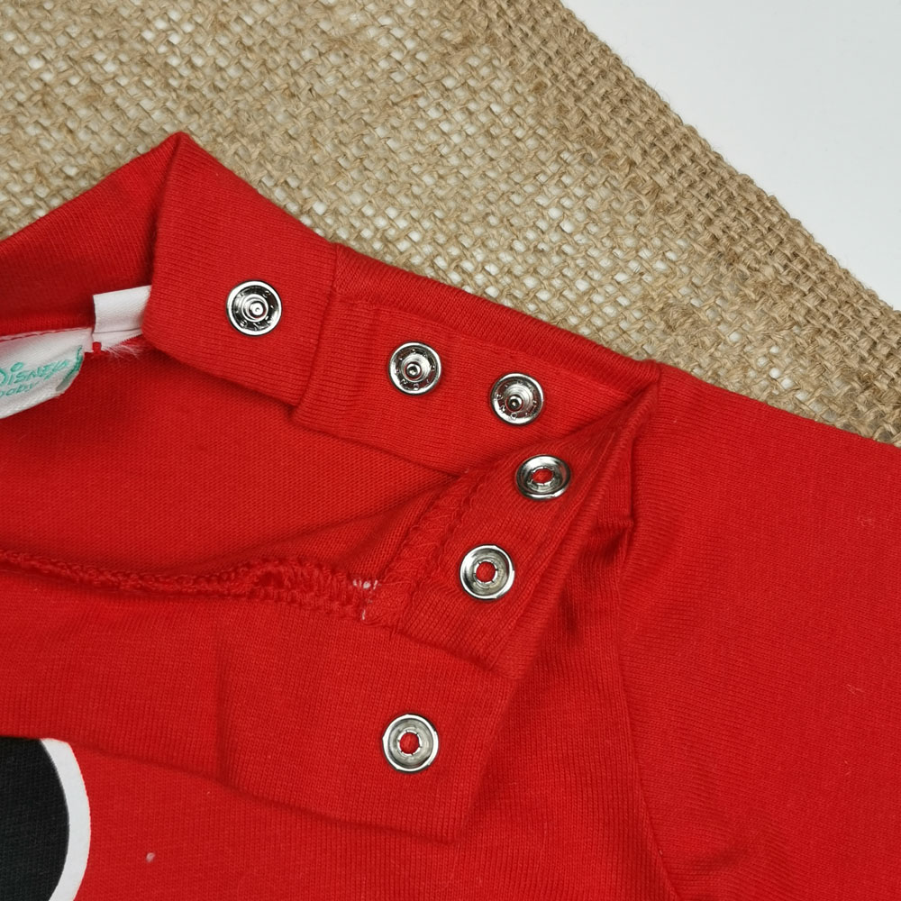 بلوز نوزادی آستین بلند برند دیزنی طرح میکی موس یقه سه سانتی قرمز رنگ – 6 ماه
