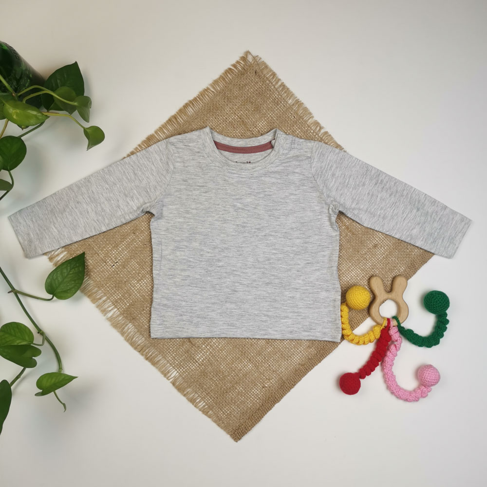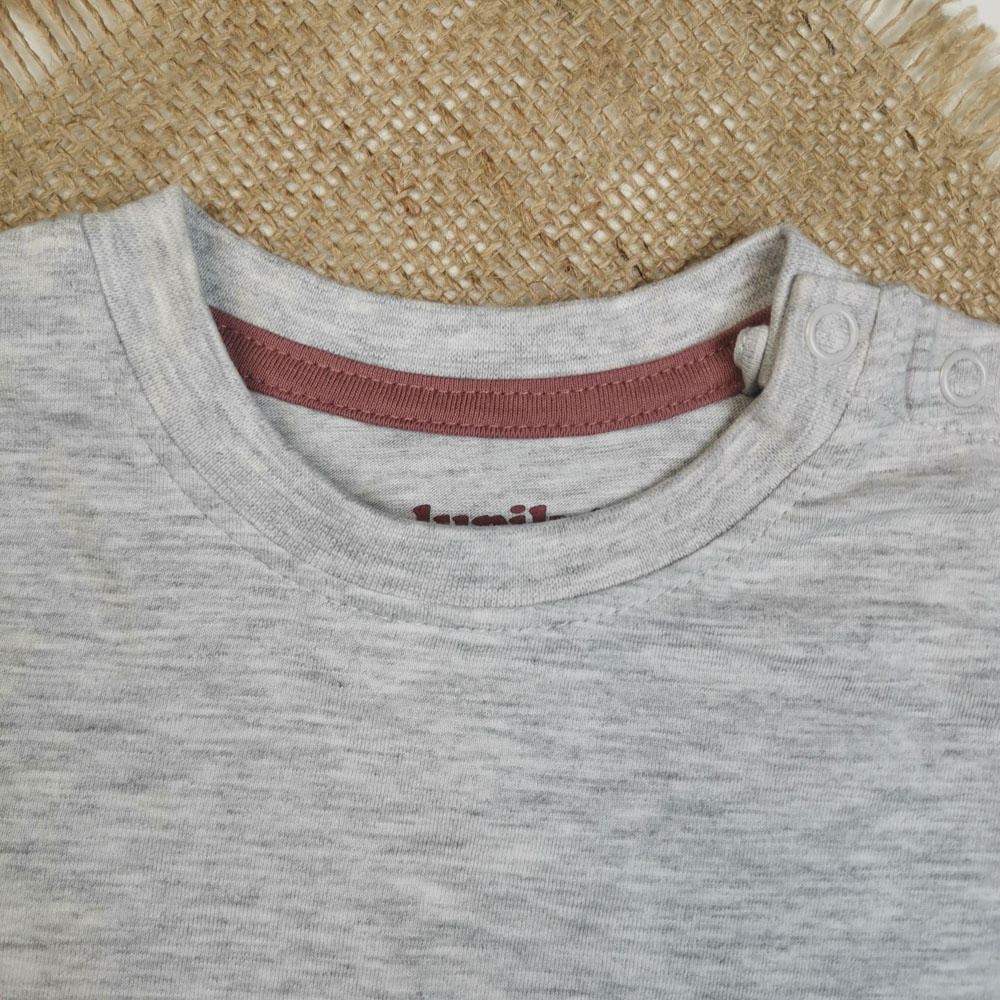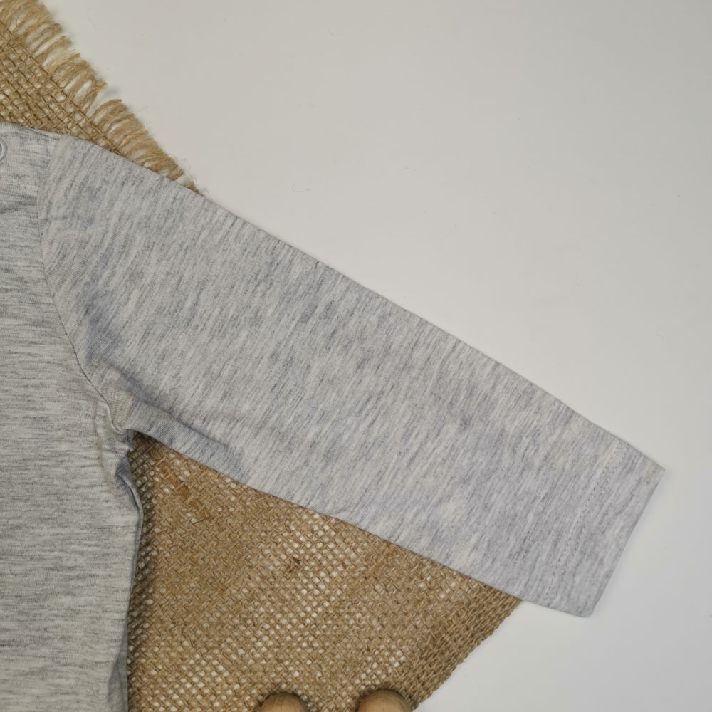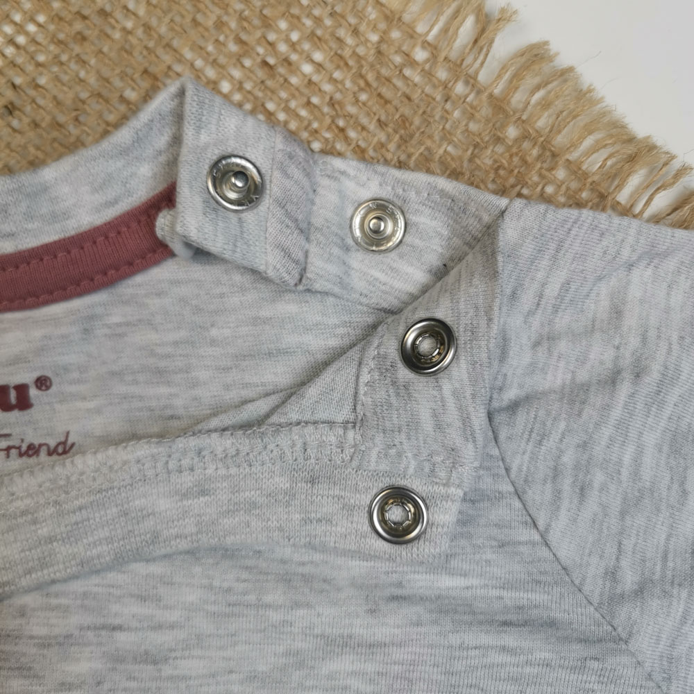 بلوز نوزادی آستین بلند برند لوپیلو سرشانه دکمه دار طوسی رنگ – 2 تا 6 ماه