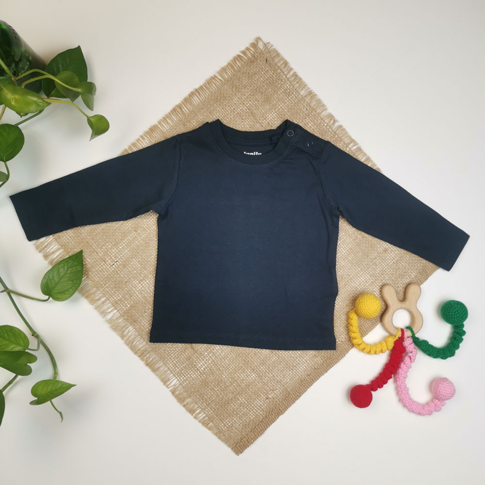 بلوز نوزادی آستین بلند برند لوپیلو سرشانه دکمه دار سرمه ای رنگ – 2 تا 6 ماه