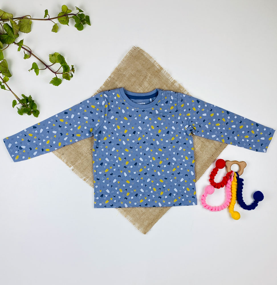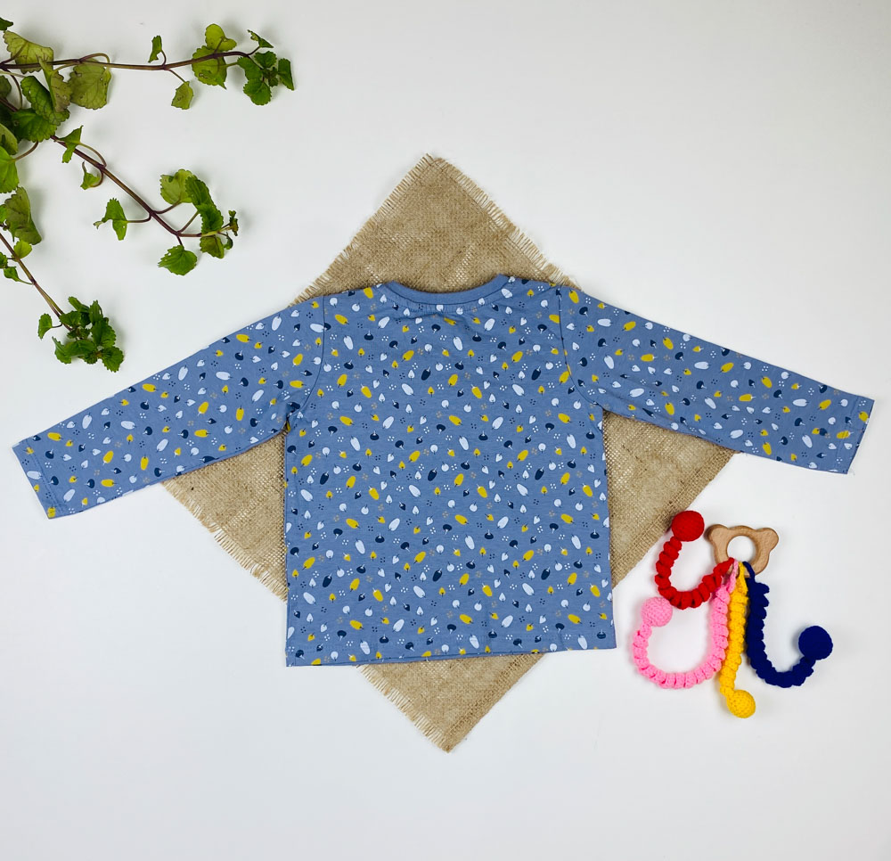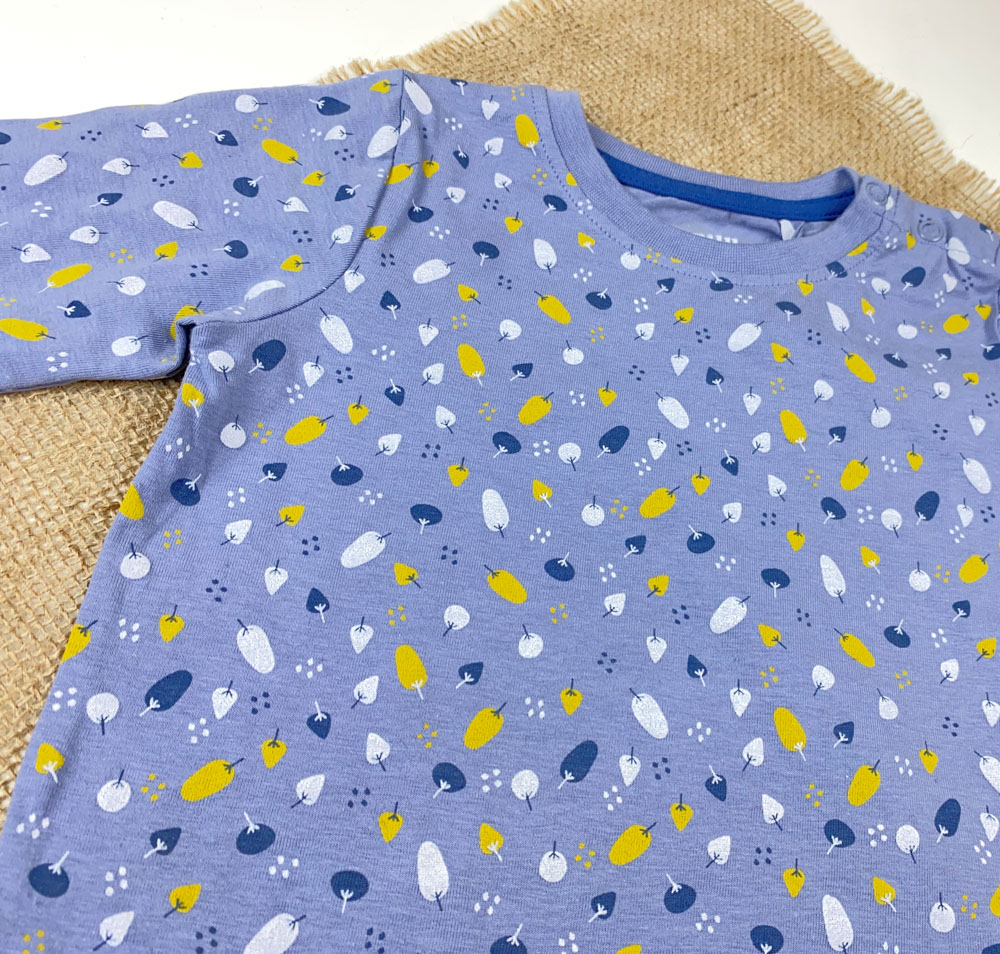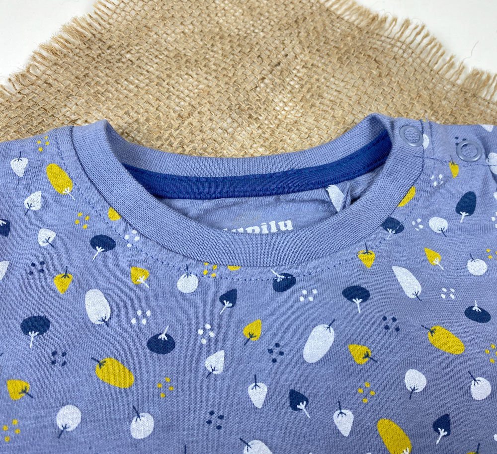 بلوز نوزادی آستین بلند برند لوپیلو طرح درخت سرشانه دکمه دار نیلی رنگ