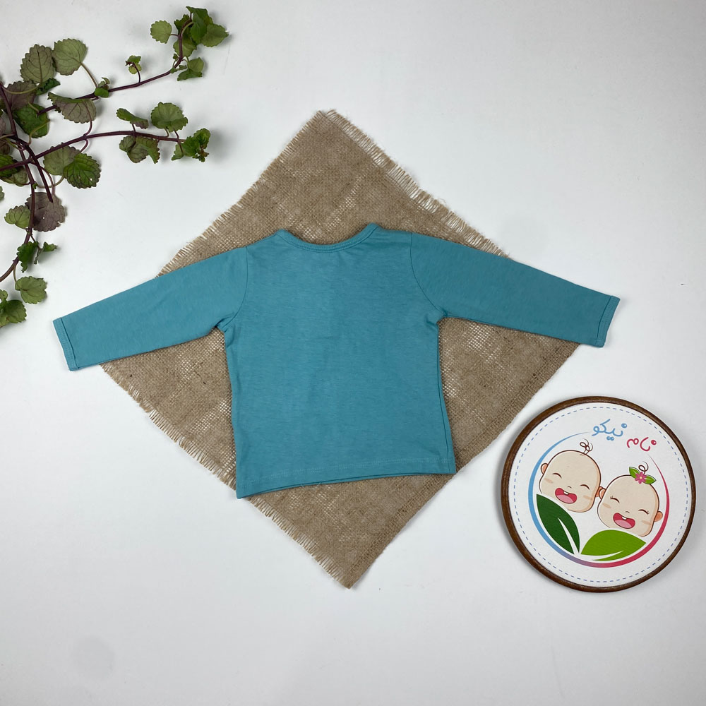 بلوز نوزادی آستین بلند برند لوپیلو طرح ساده یقه گرد سه دکمه سبز صابونی رنگ