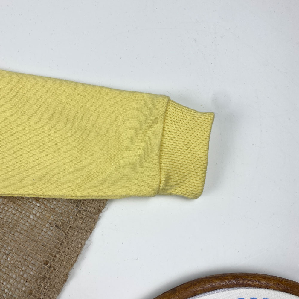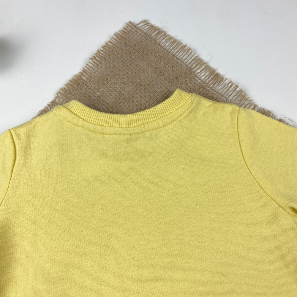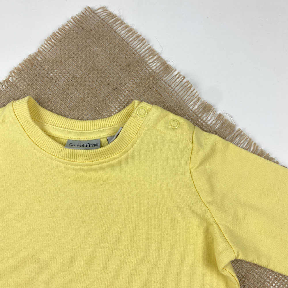 بلوز نوزادی آستین بلند برند لوپیلو طرح ساده یقه گرد دو دکمه ای لیمویی رنگ – 6 تا 12 ماه
