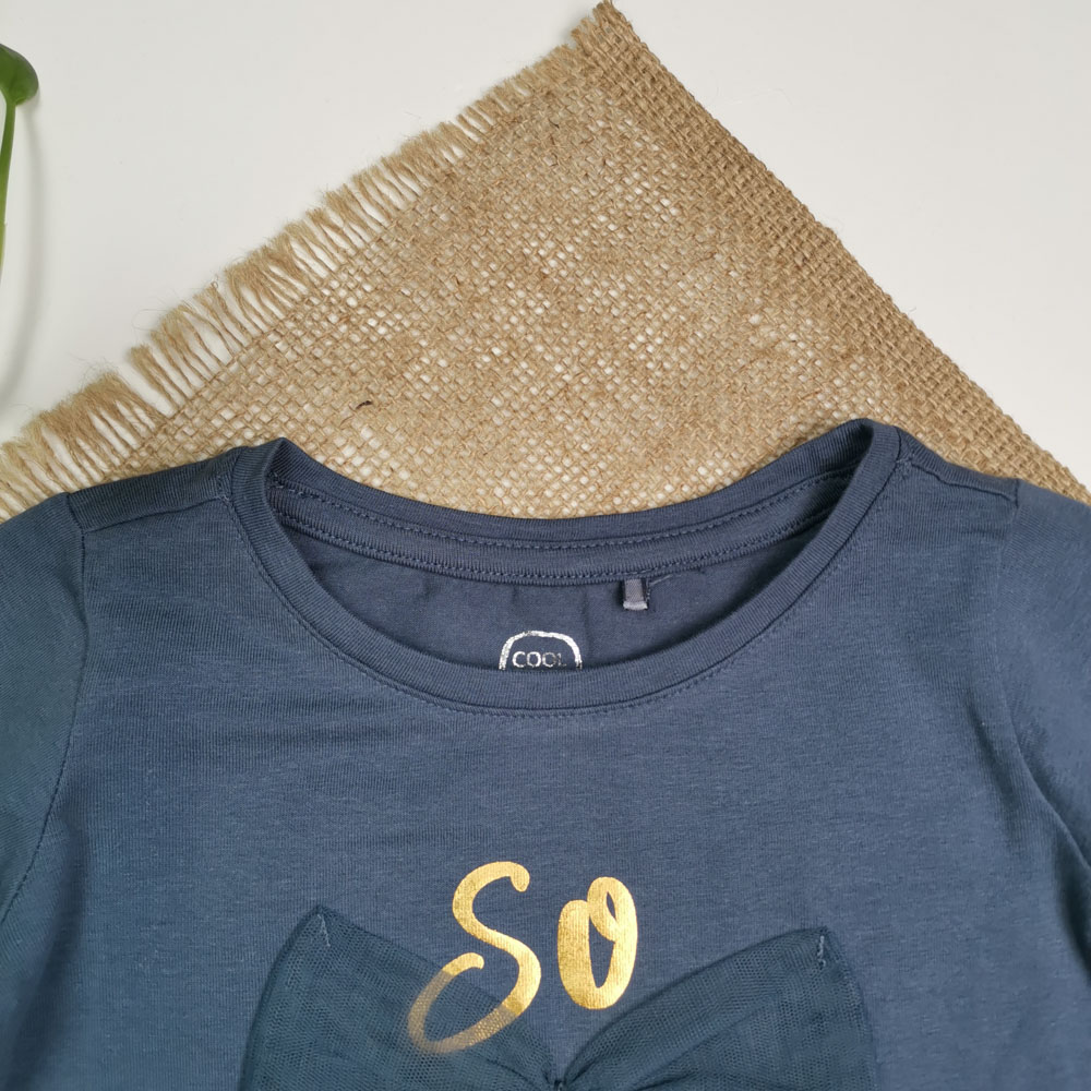 بلوز نوزادی آستین بلند برند cool club طرح پاپیون و ستاره آبی نفتی رنگ – 12 تا 24 ماه