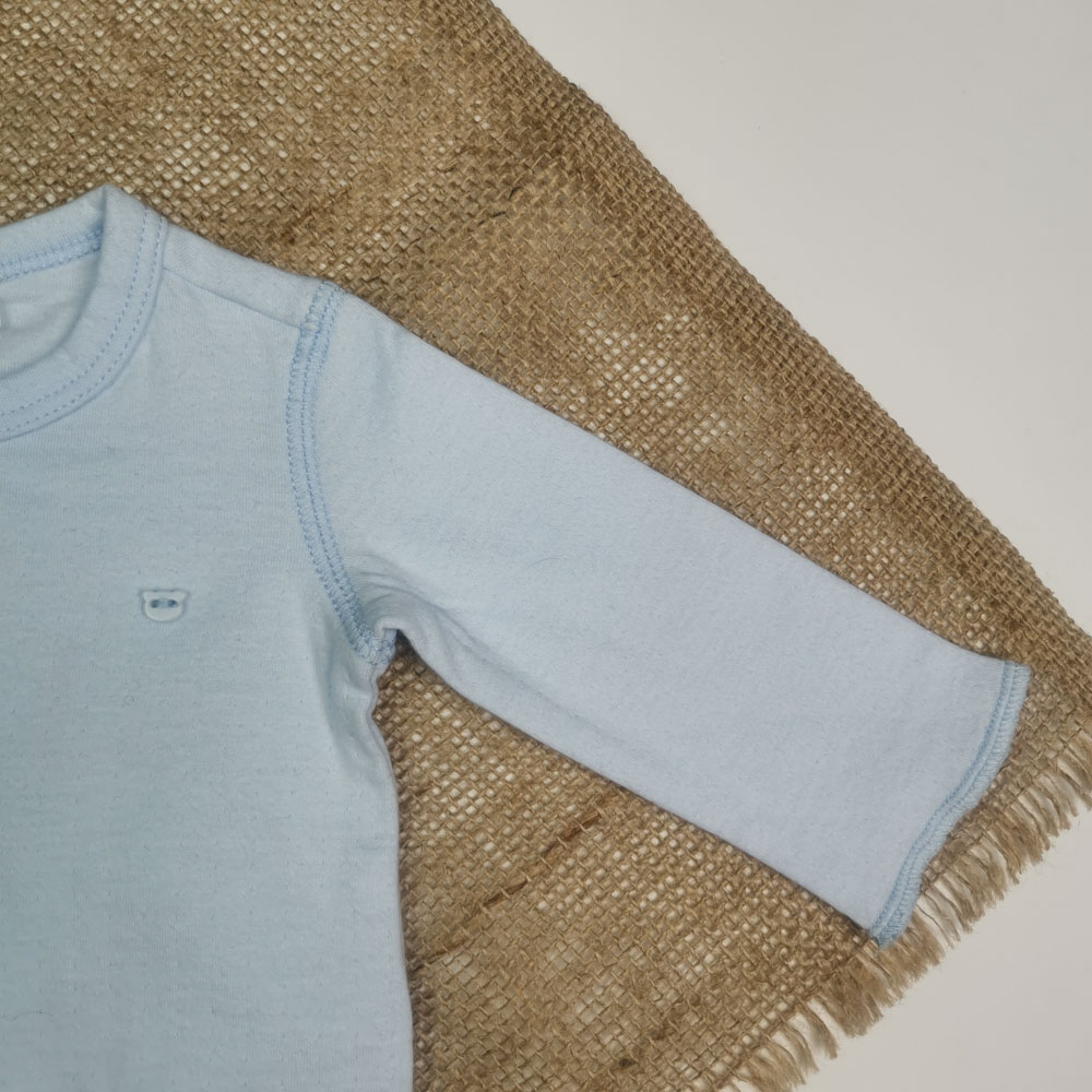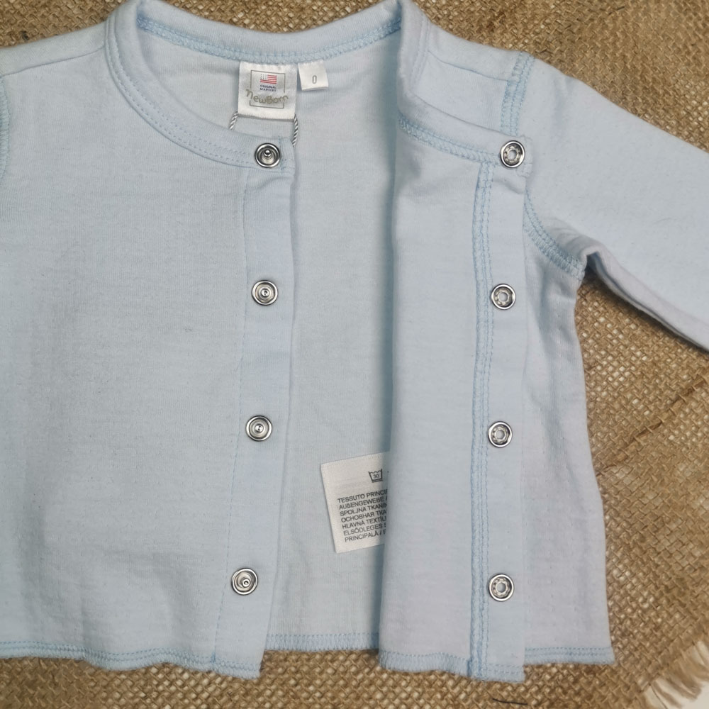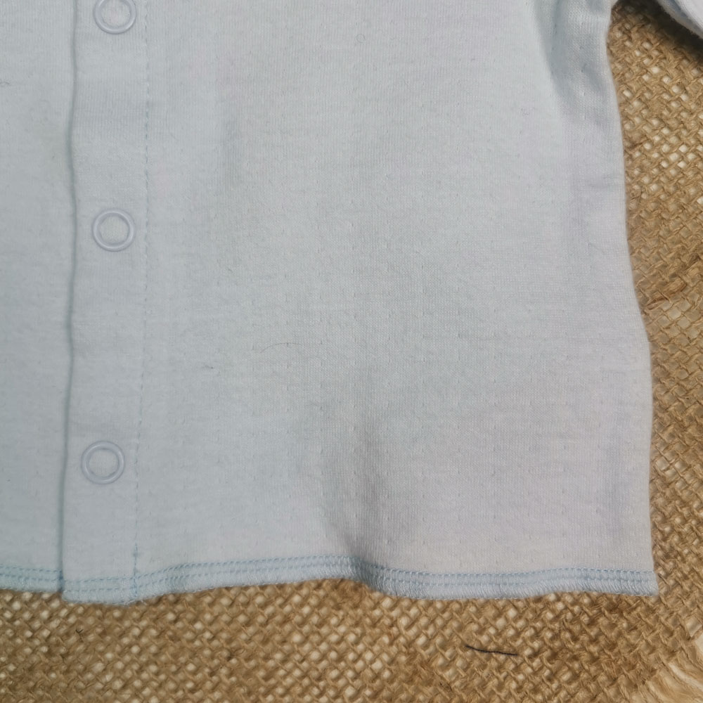 بلوز نوزادی آستین بلند جلو دکمه دار آبی رنگ