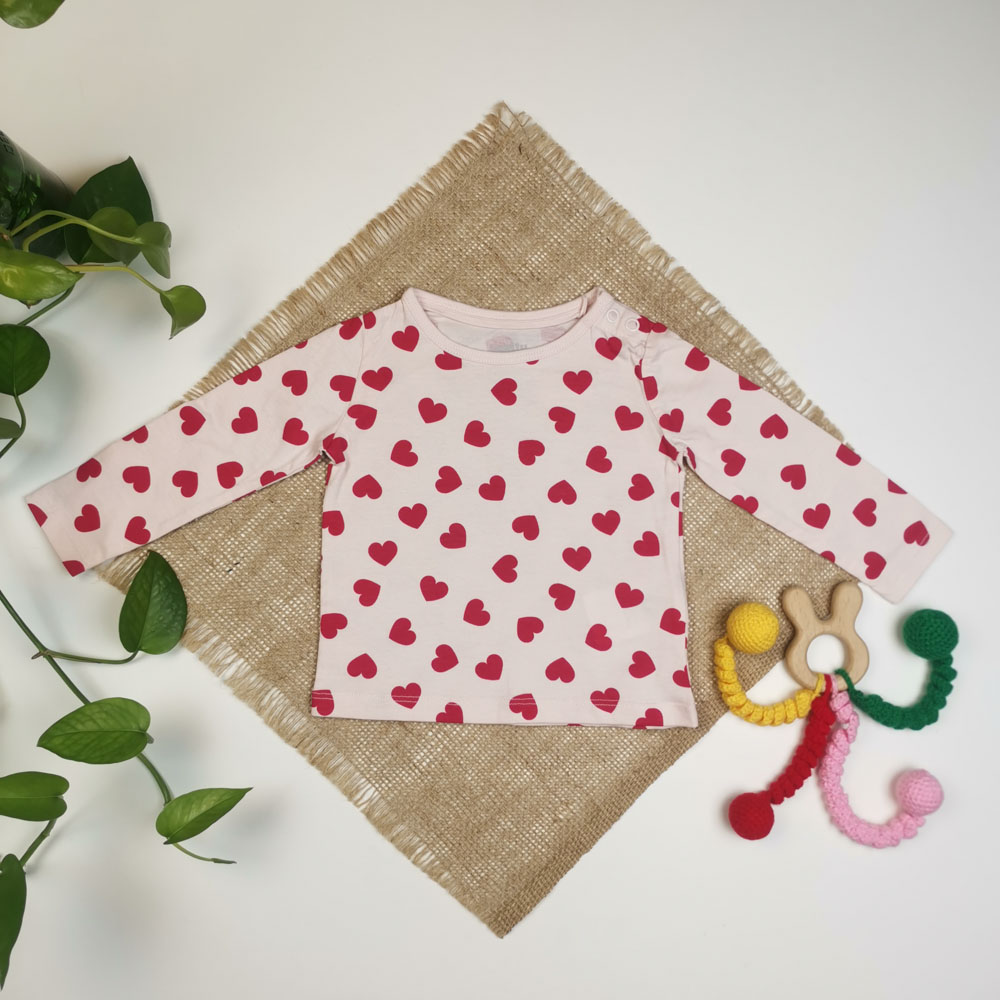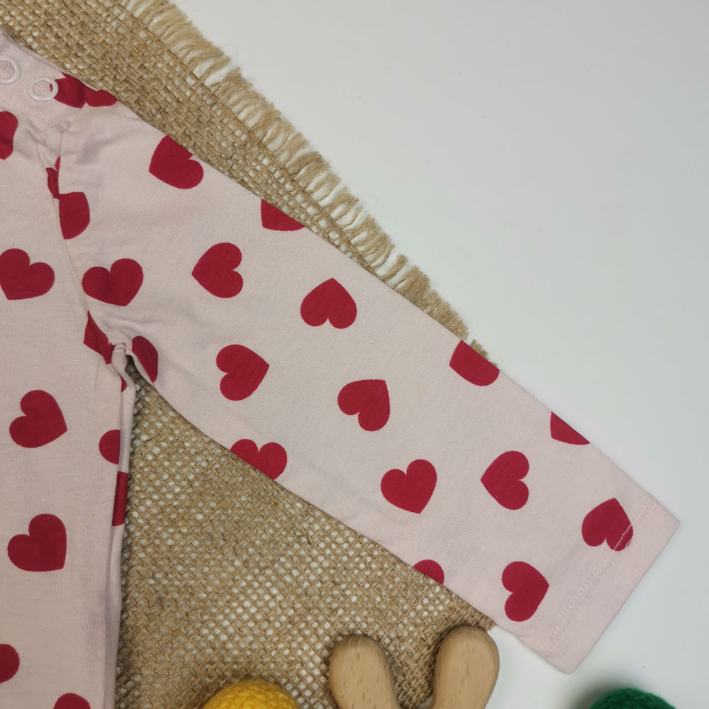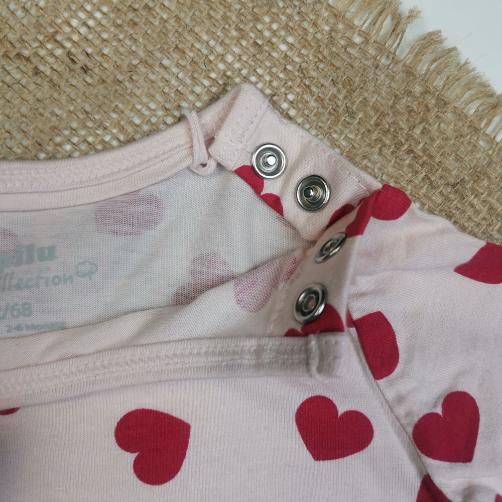 بلوز نوزادی دخترانه آستین بلند برند لوپیلو طرح قلبی سرشانه دکمه دار گلبهی رنگ – 2 تا 6 ماه