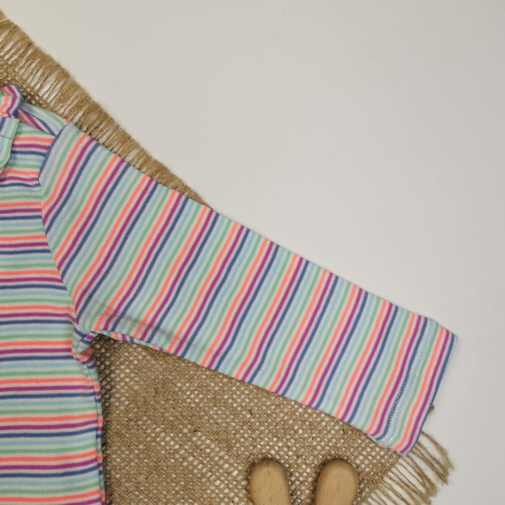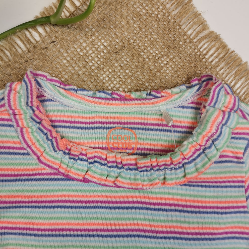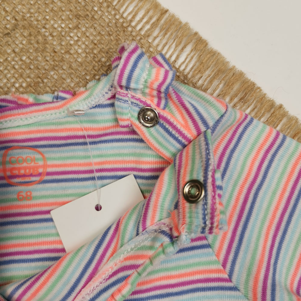 بلوز نوزادی دخترانه آستین بلند برند cool club طرح راه راه سرشانه دکمه دار سفید رنگ – 6 ماه