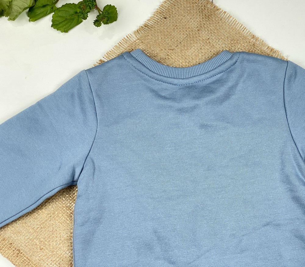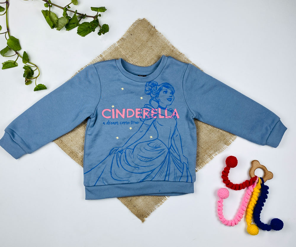 بلوز نوزادی دخترانه آستین بلند طرح یقه گرد پرنسس نیلی رنگ – 18 تا 24 ماه