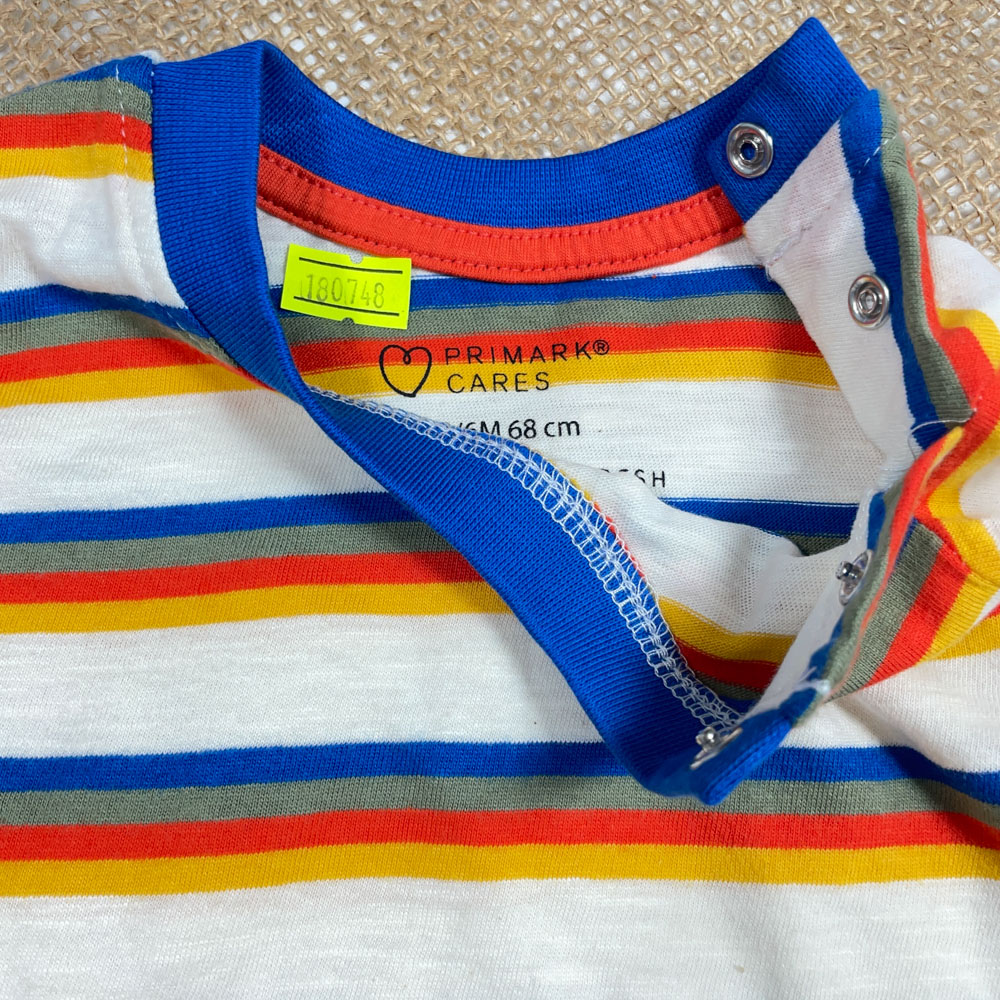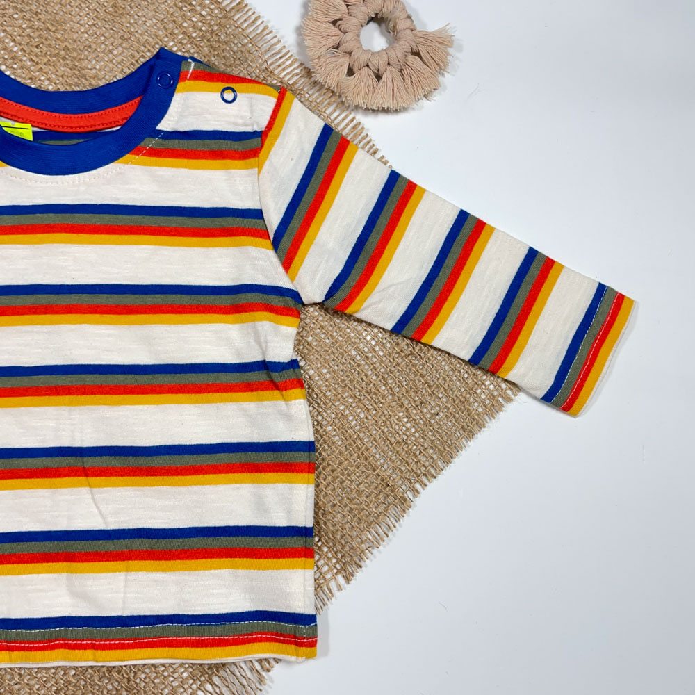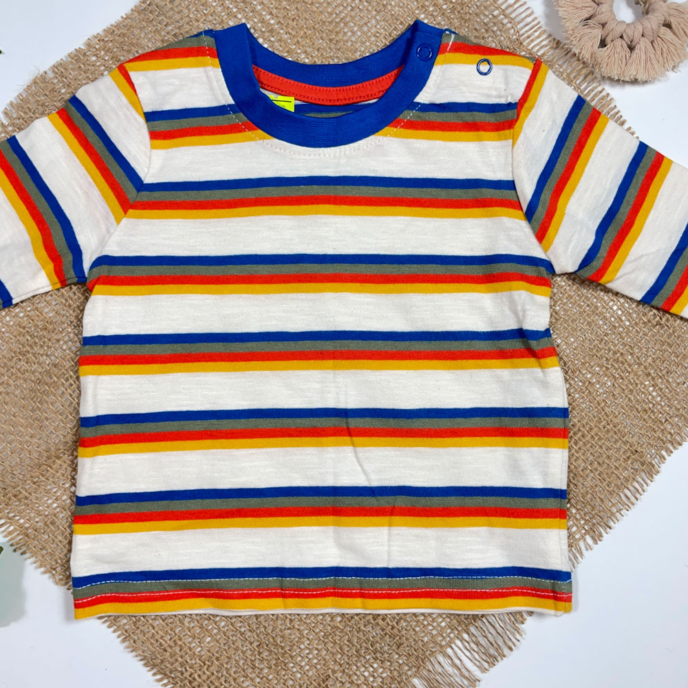 بلوز نوزادی پسرانه آستین بلند طرح راه راه رنگی سفید رنگ – 3 تا 6 ماه