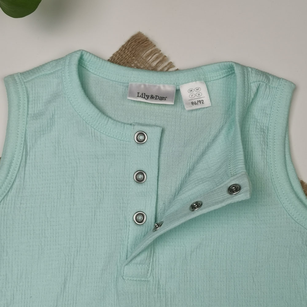 بیلر نوزادی آستین تاپ برند Lily and Dan طرح سه دکمه سبز پاستلی رنگ