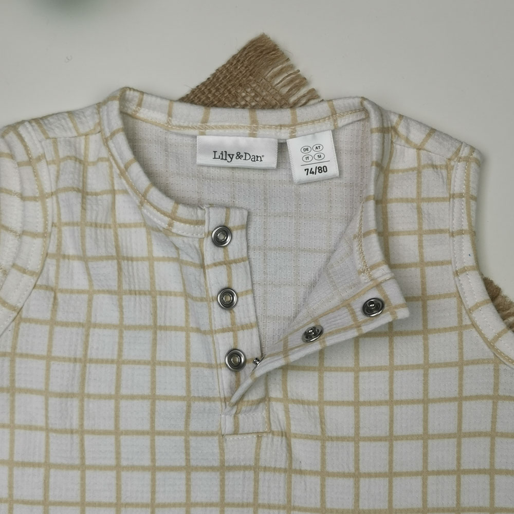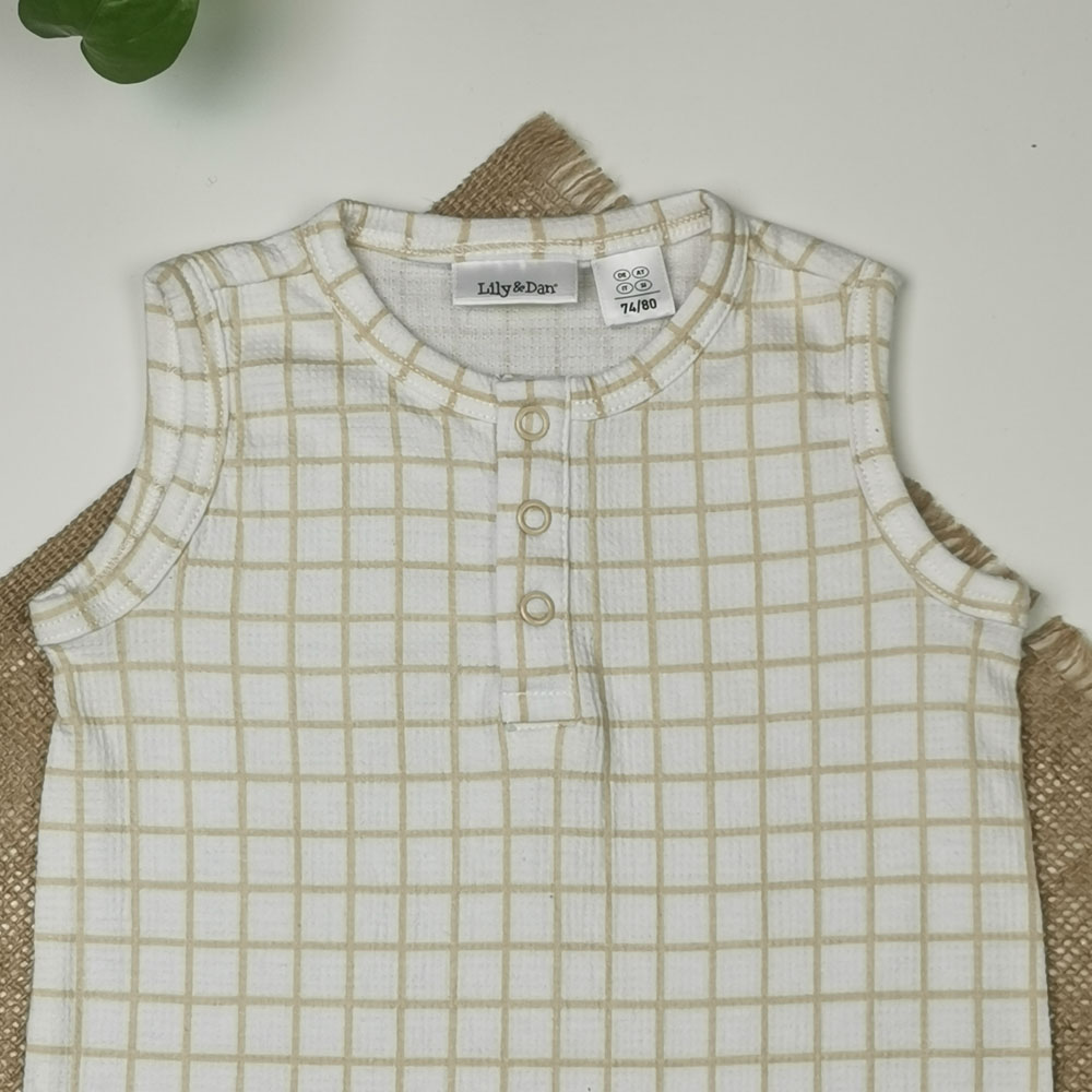 بیلر نوزادی آستین تاپ برند Lily and Dan طرح چهار خانه سفید رنگ – 6-12 ماه