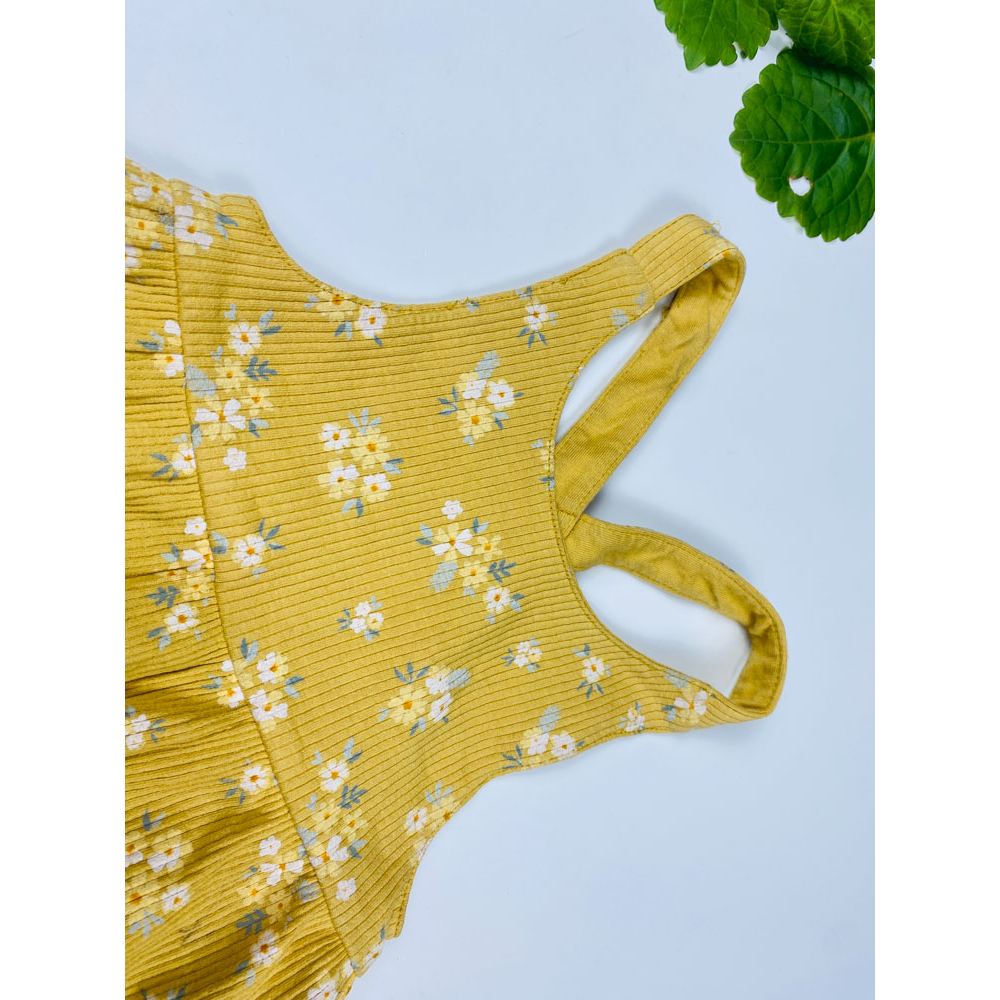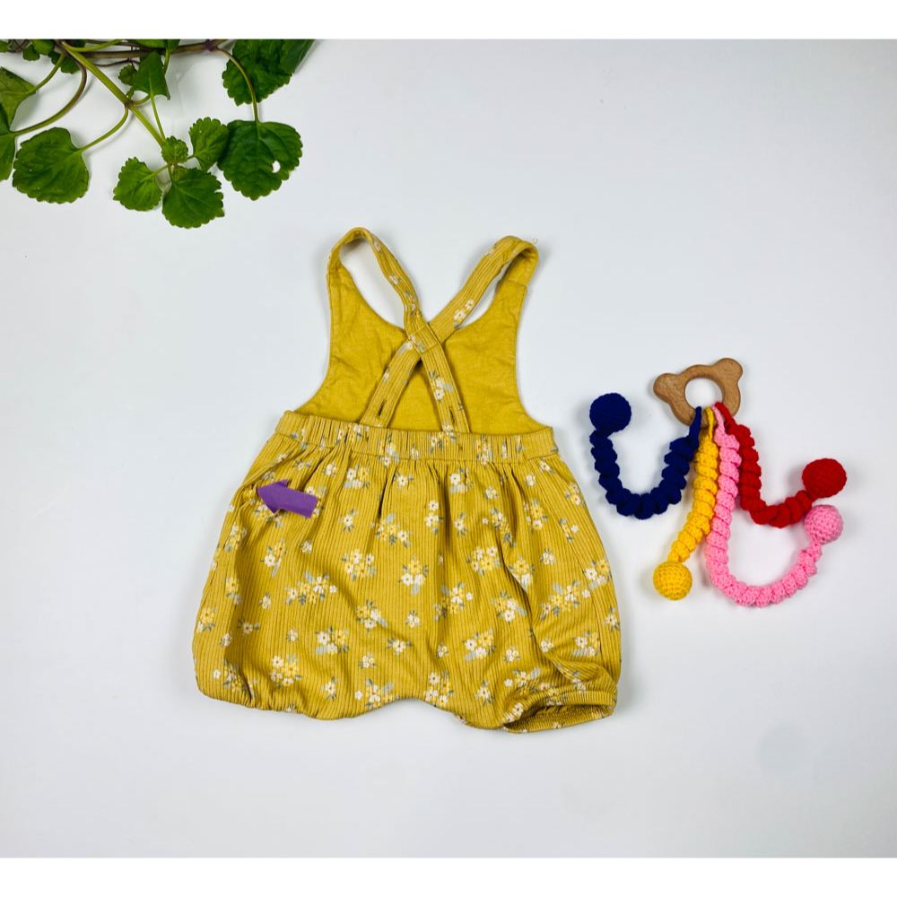 بیلر نوزادی دخترانه آستین تاپ طرح گل گلی بیلر بندی خردلی رنگ – 2 تا 3 ماه