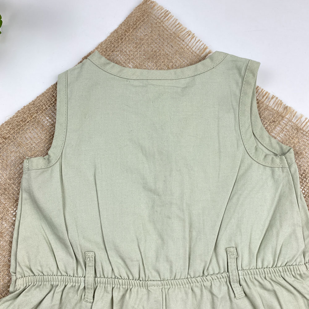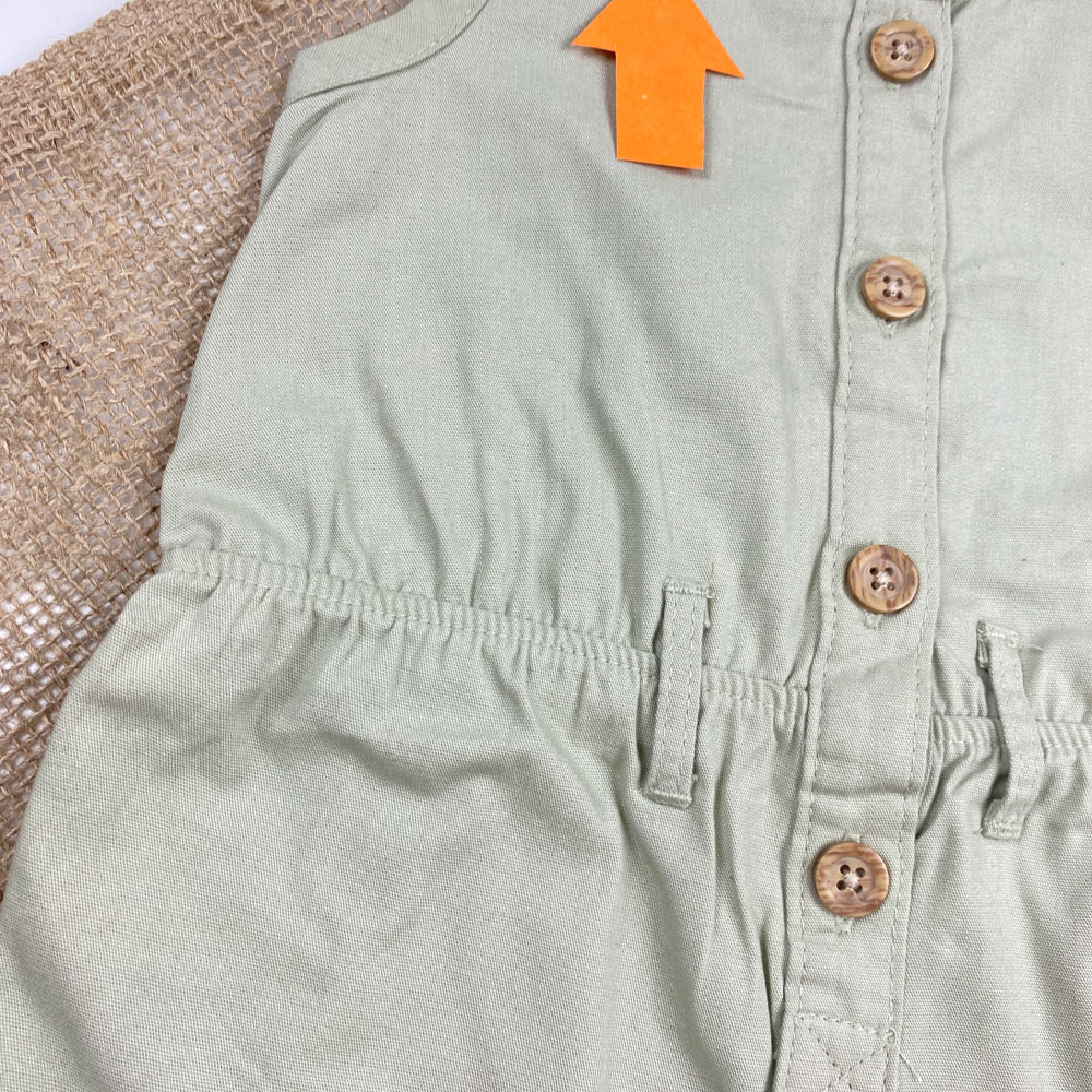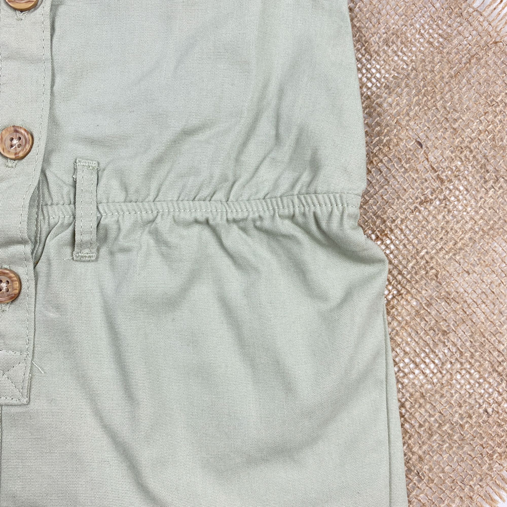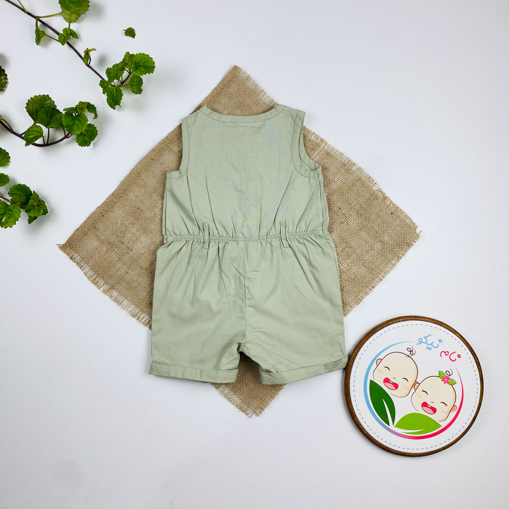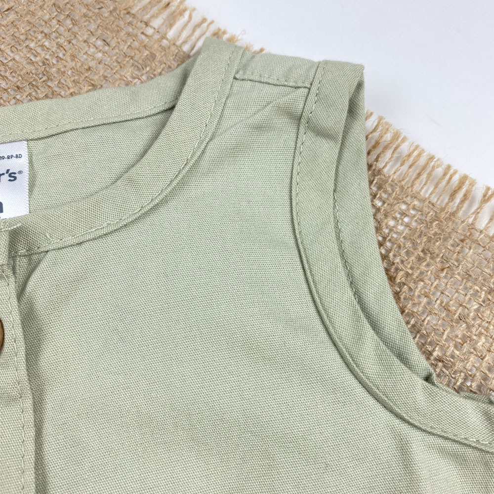 بیلر کتان نوزادی دخترانه برند کارترز طرح کمرکش دار چهار دکمه سبز رنگ