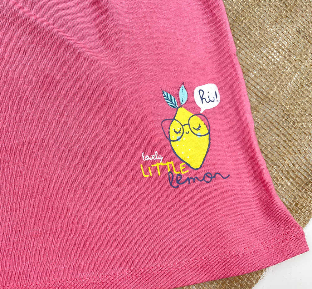تاپ نوزادی دخترانه آستین کوتاه برند لوپیلو طرح تاب چین چینی لیمو صورتی رنگ
