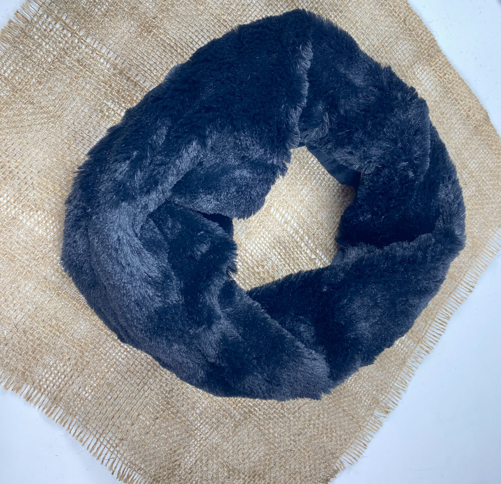تخفیف یلدایی _ شال رینگی طرح خز دار رینگی گردنی مشکی رنگ – فری سایز