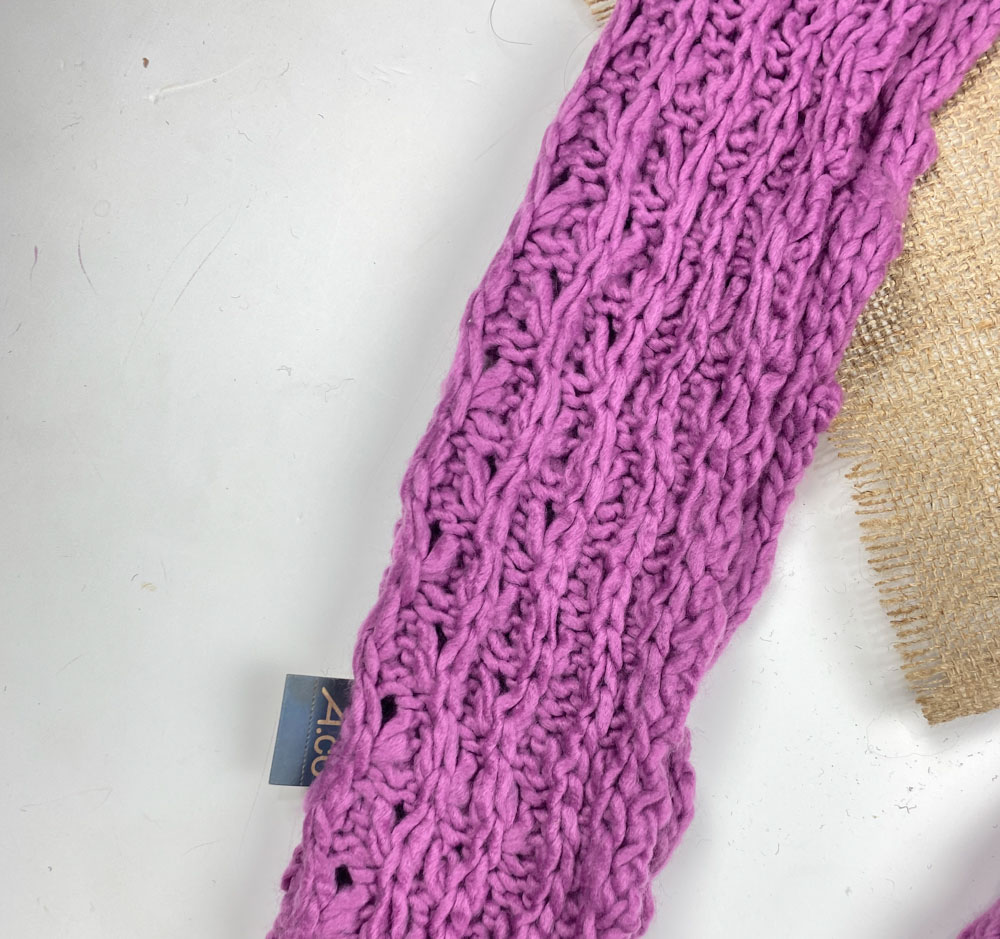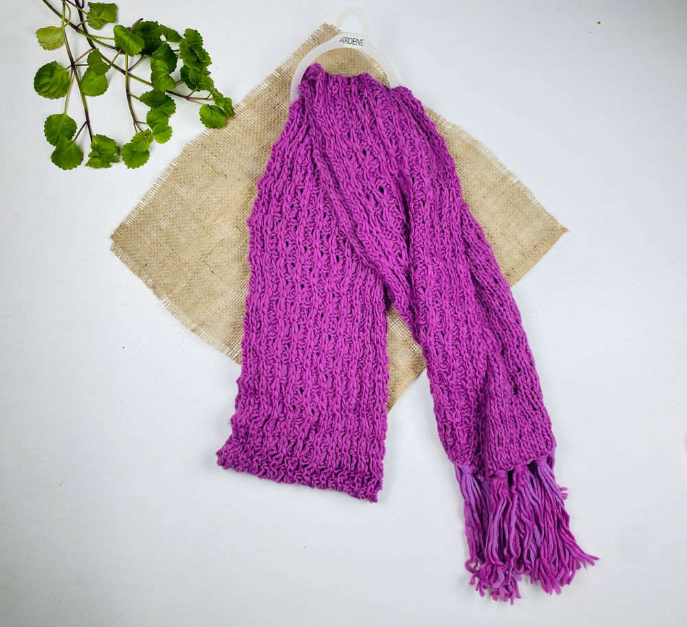 تخفیف یلدایی _ شال گردن برند A.co طرح تک رنگ بلند مدل ریش ریش یاسی رنگ – فری سایز