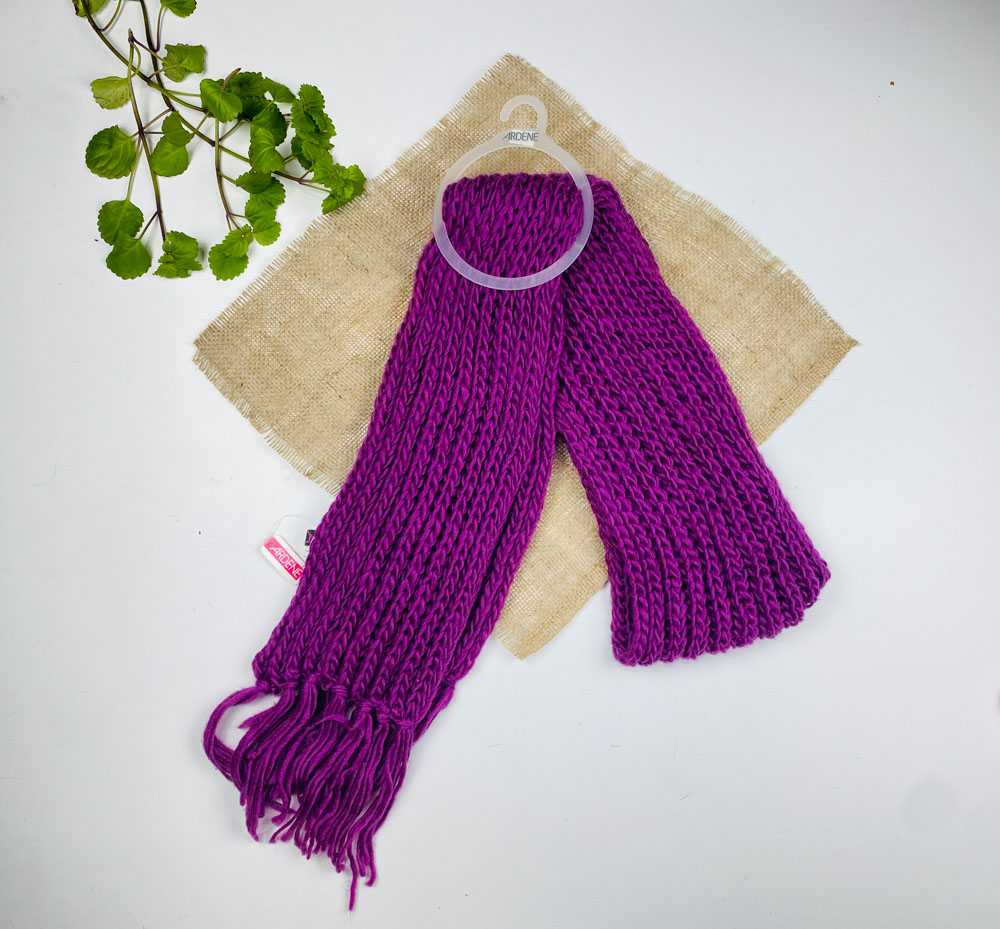 تخفیف یلدایی _ شال گردن طرح تک رنگ بافت شال بلند ریش ریش بنفش رنگ – فری سایز