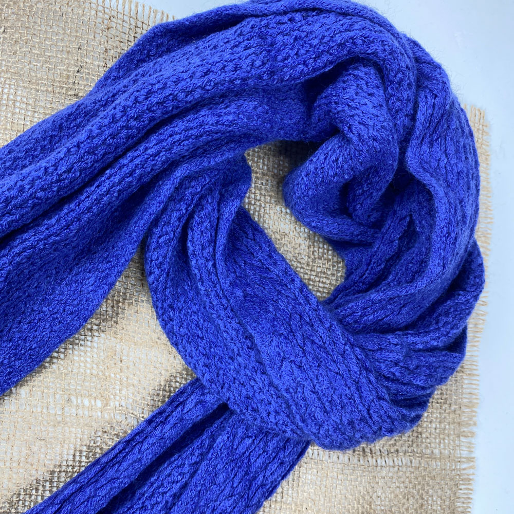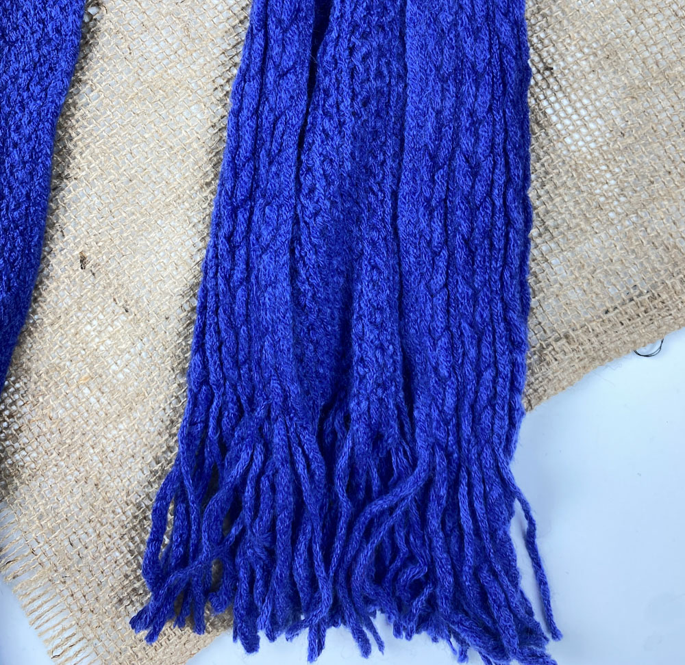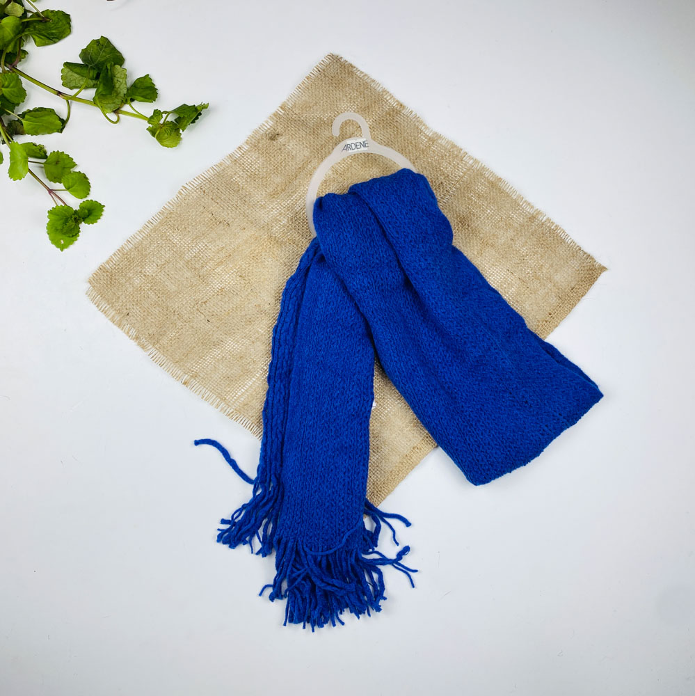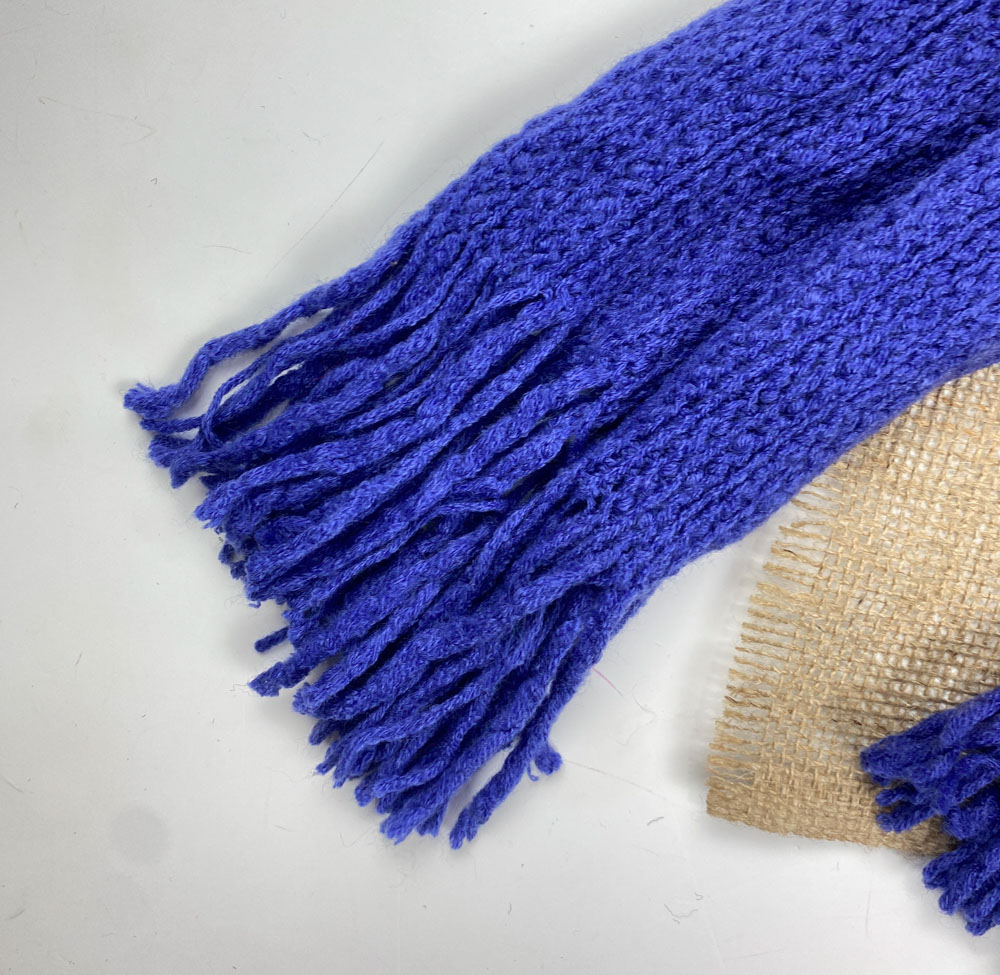 تخفیف یلدایی _ شال گردن طرح تک رنگ مدل ریش ریش نیلی رنگ – فری سایز