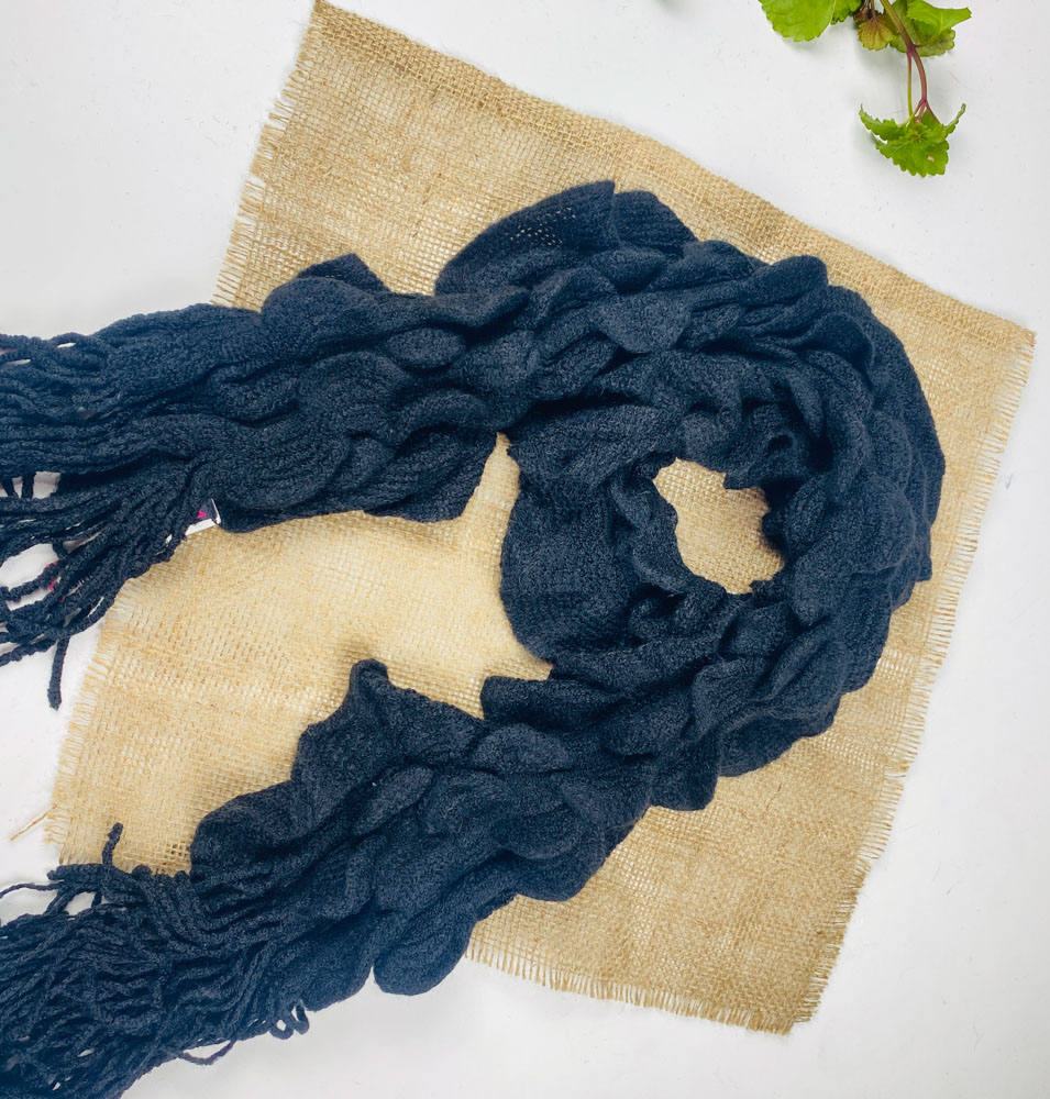 تخفیف یلدایی _ شال گردن طرح حالت پف پفی مدل ریش ریش مشکی رنگ – فری سایز