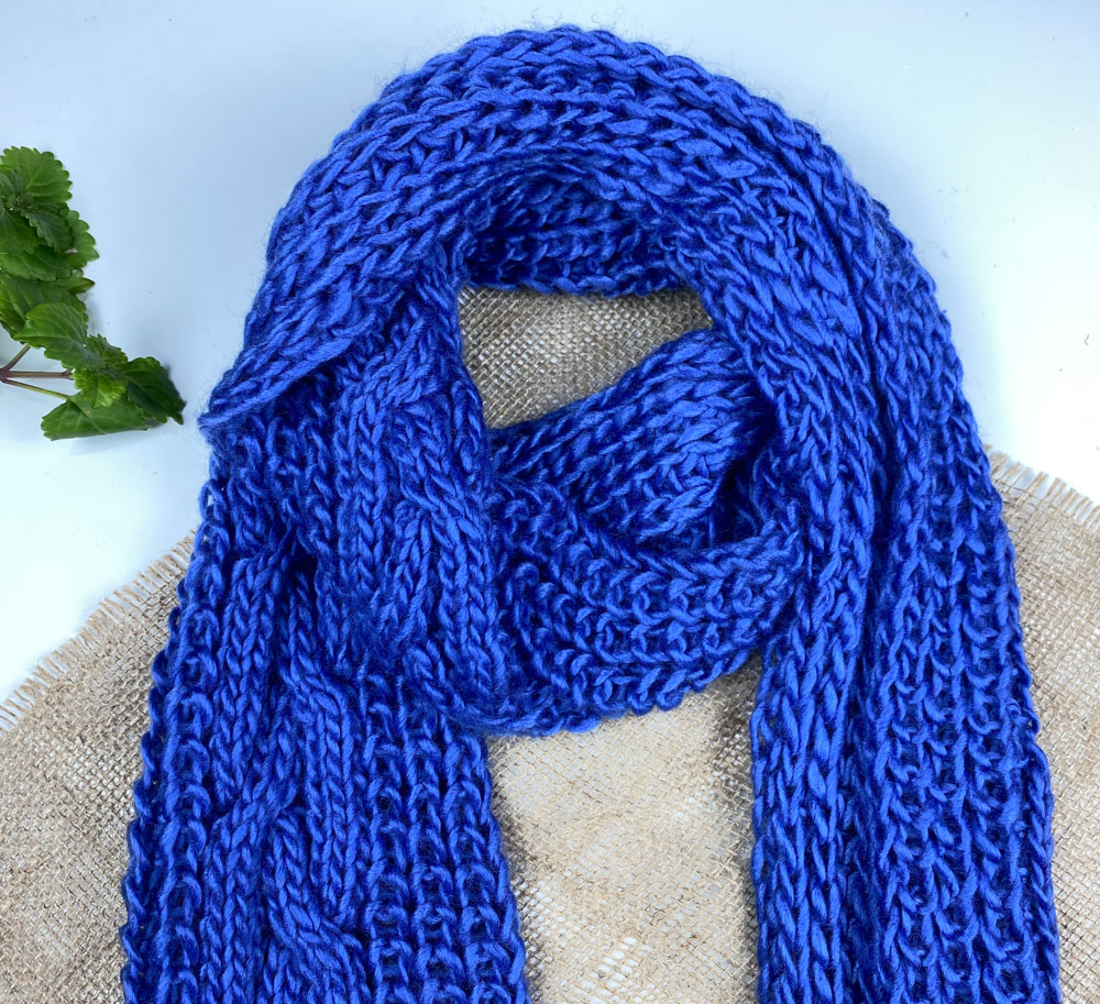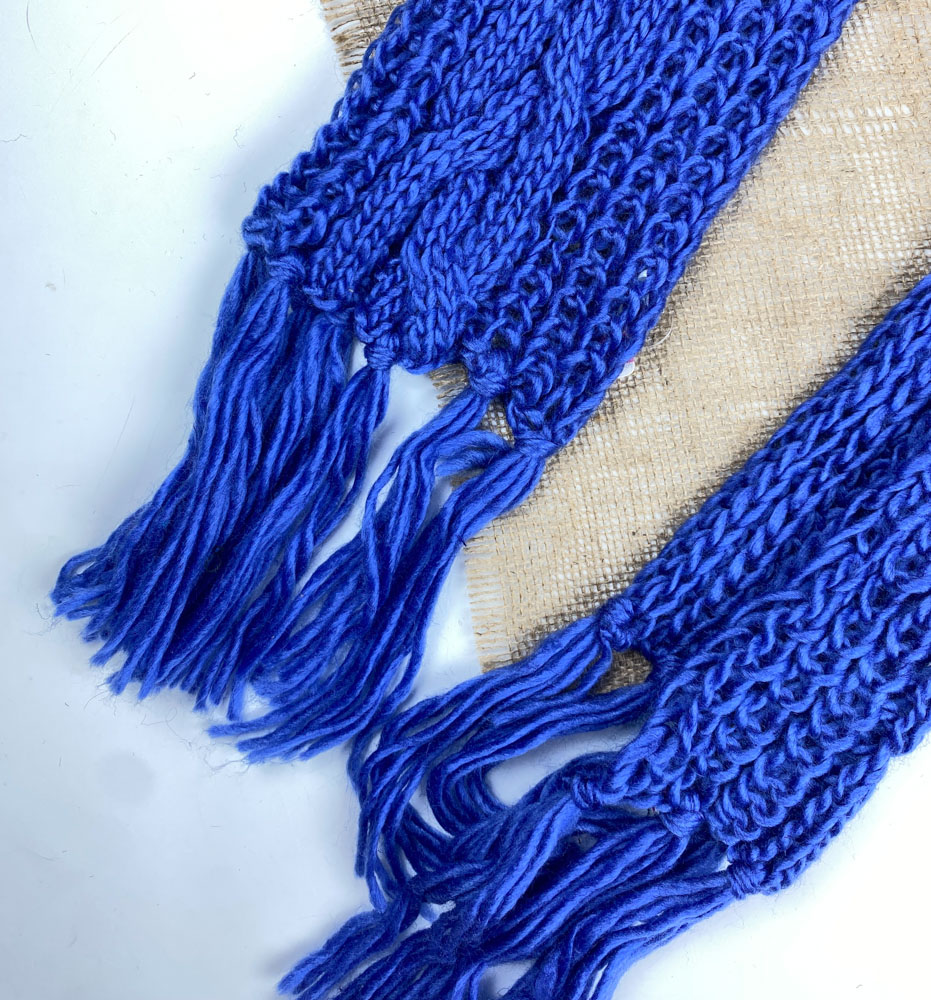 تخفیف یلدایی _ شال گردن طرح شال گردن بافت مدل ریش ریش نیلی رنگ – فری سایز