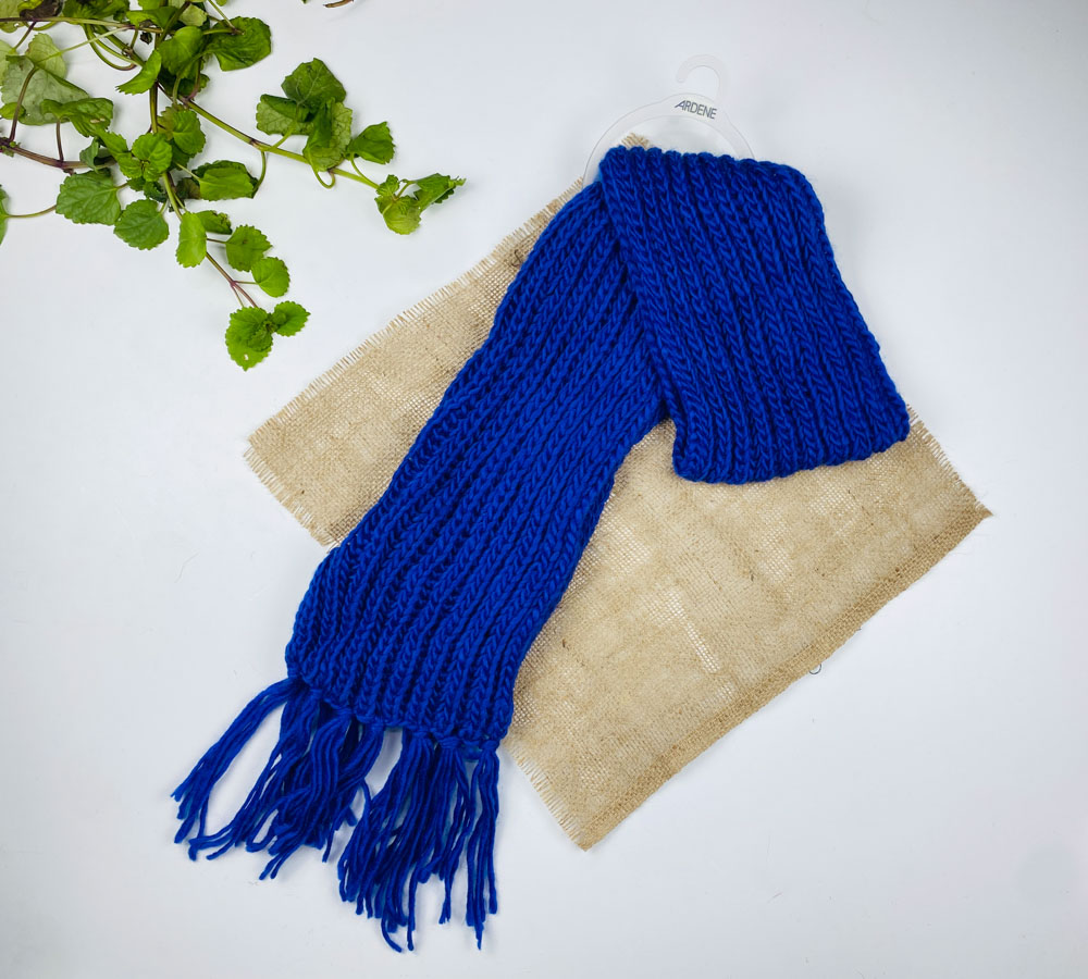 تخفیف یلدایی _ شال گردن طرح شال گردن قد متوسط مدل ریش ریش آبی نیلی رنگ – فری سایز