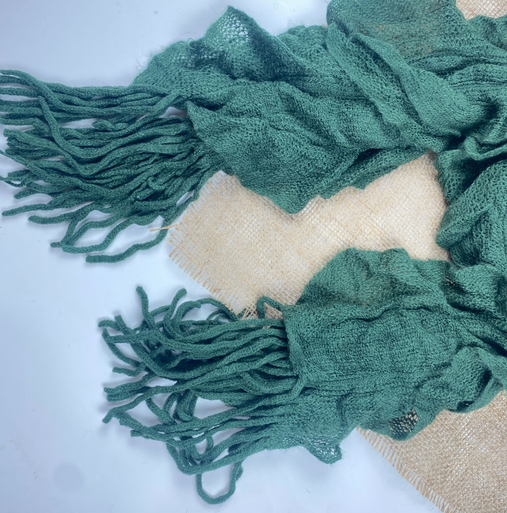 تخفیف یلدایی _ شال گردن طرح مدل حاشیه پر پری ریش ریشی سبز رنگ – فری سایز