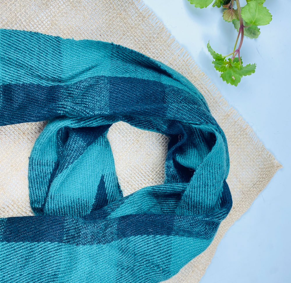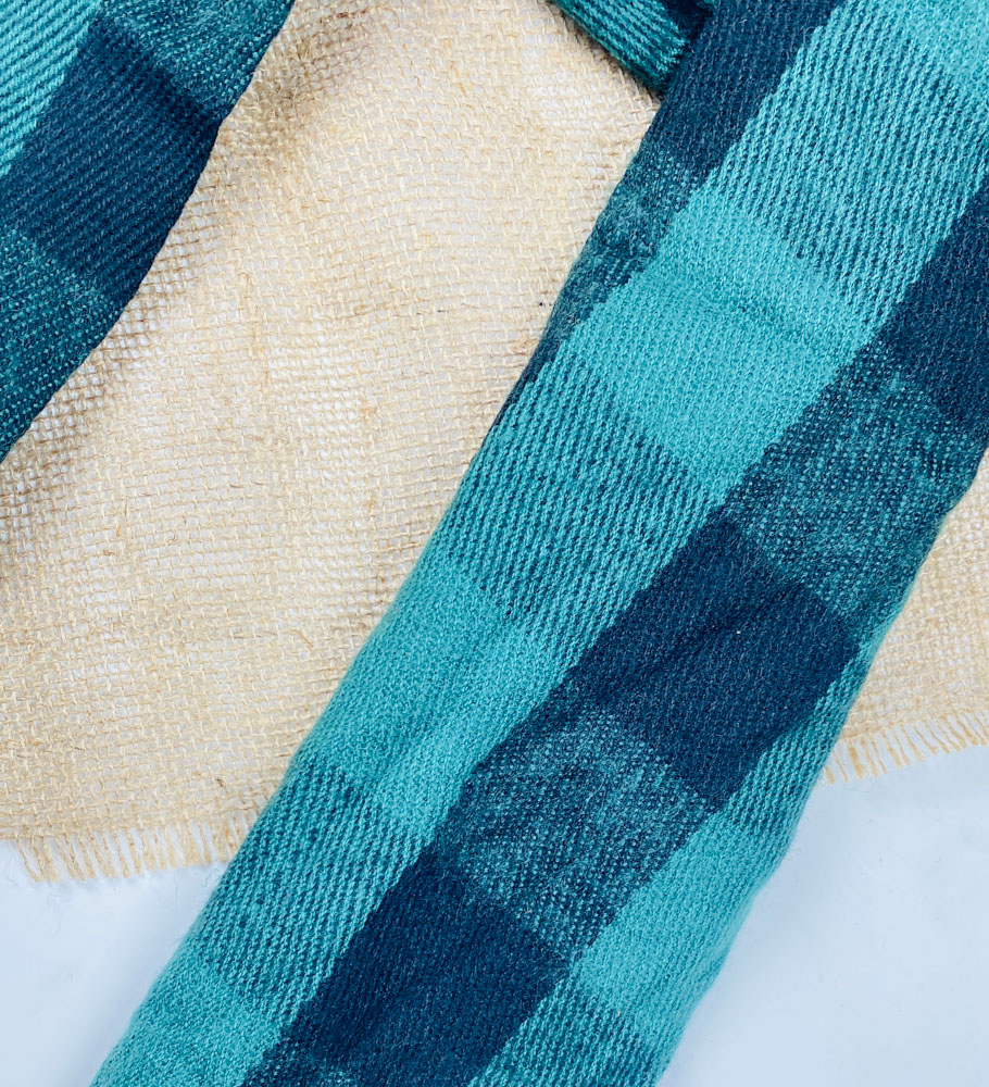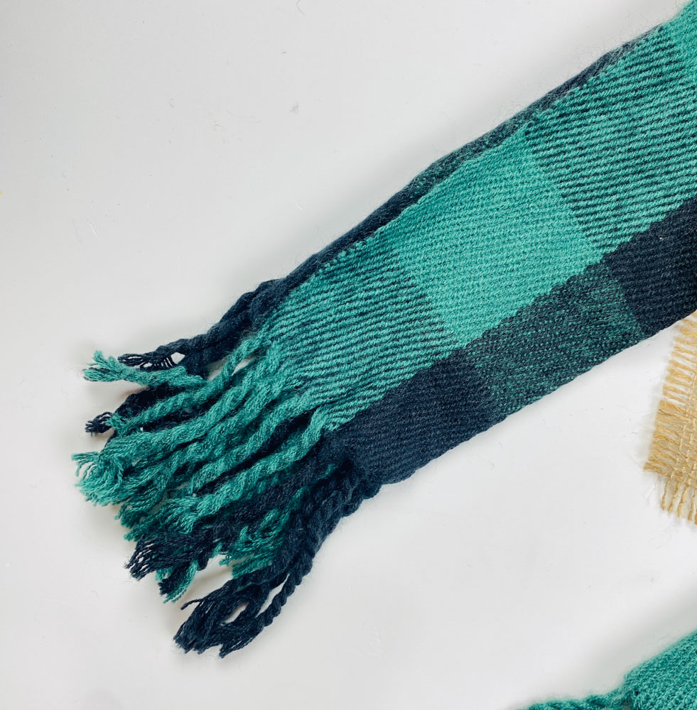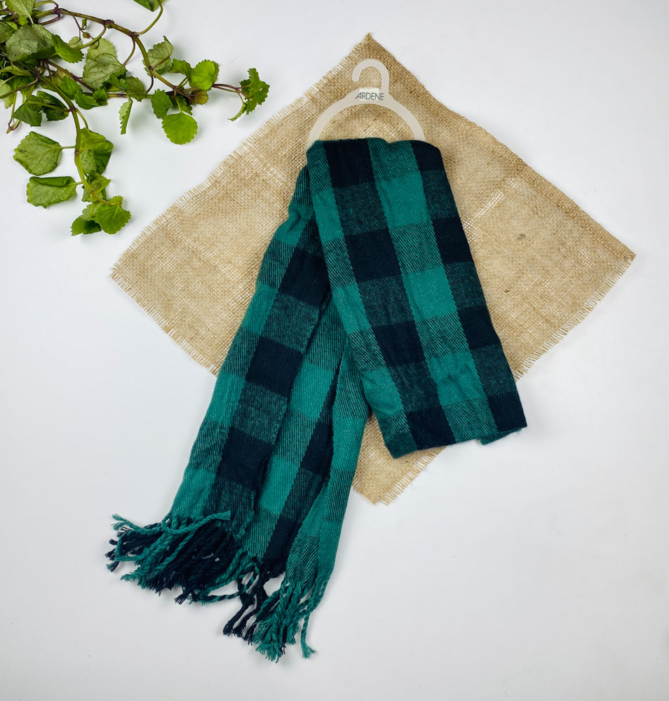 تخفیف یلدایی _ شال گردن طرح چهار خونه ای ریش ریش سبز رنگ – فری سایز