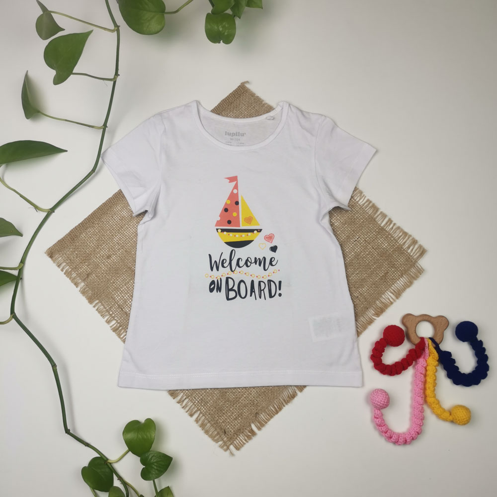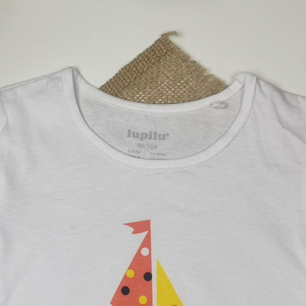 تیشرت دخترانه آستین کوتاه برند lupilu طرح قایق سفید رنگ