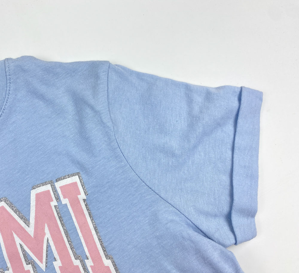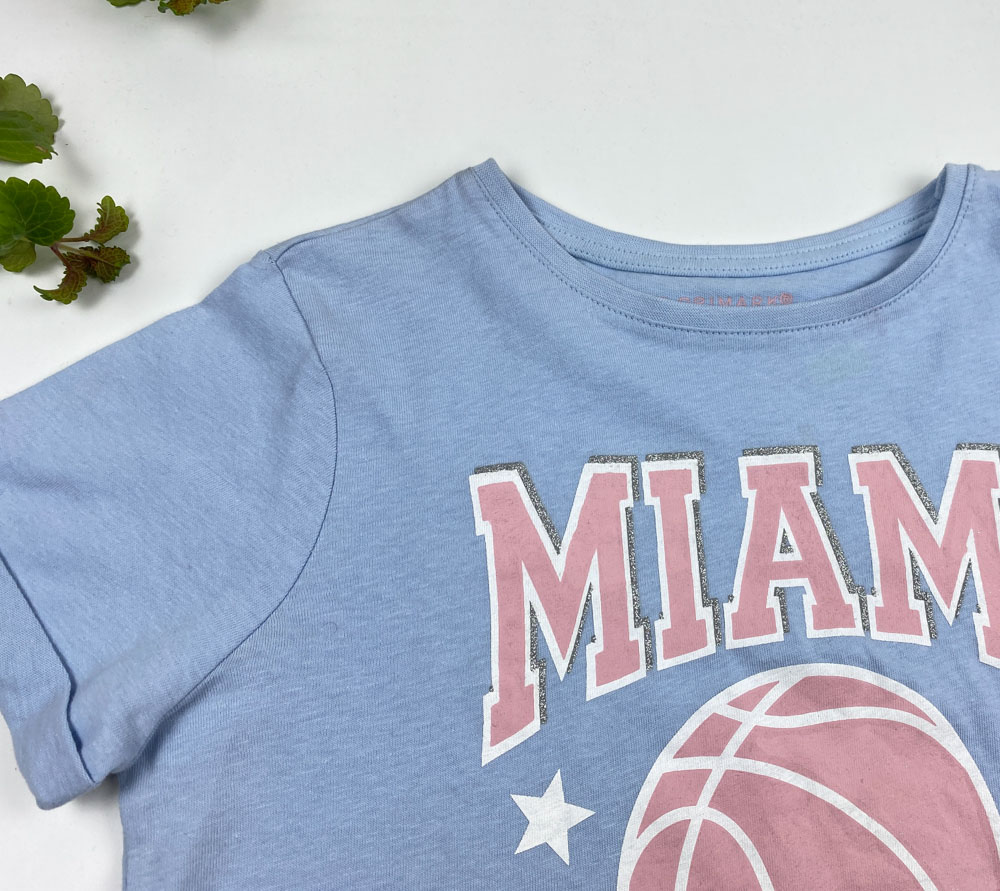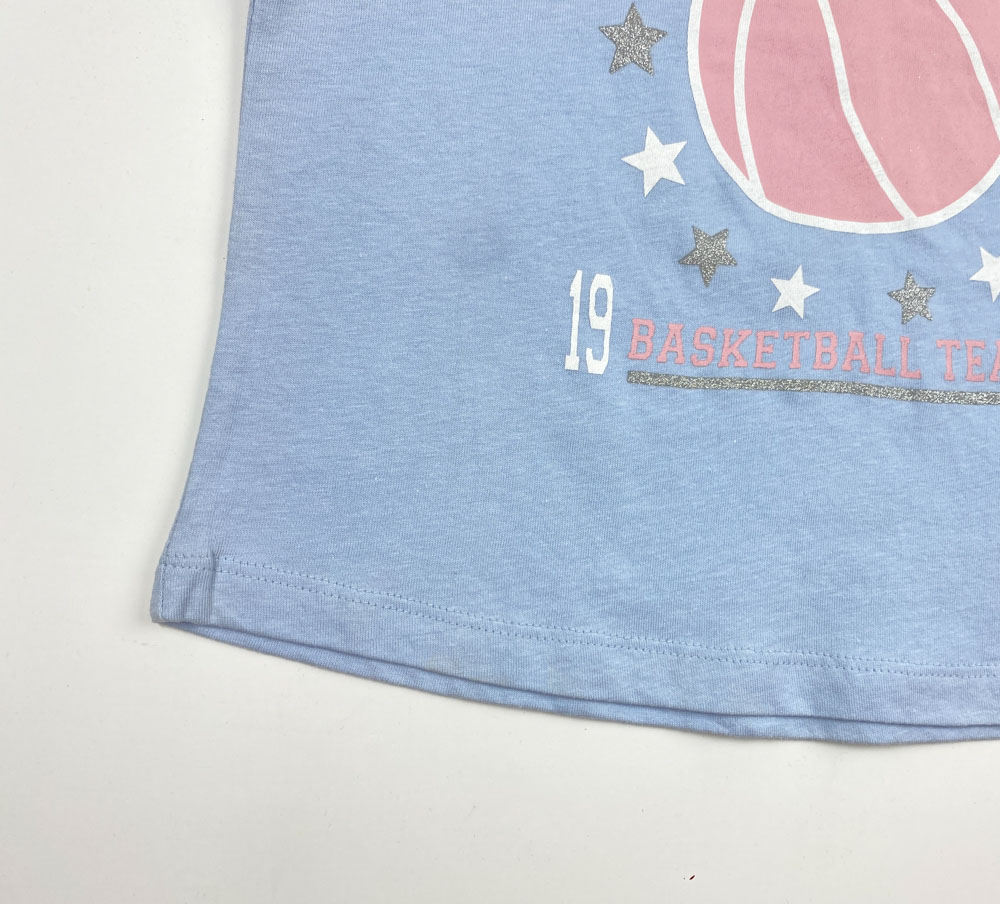 تیشرت دخترانه آستین کوتاه طرح یقه گرد توپ صورتی ستاره آبی آسمانی رنگ – 8 تا 9 سال