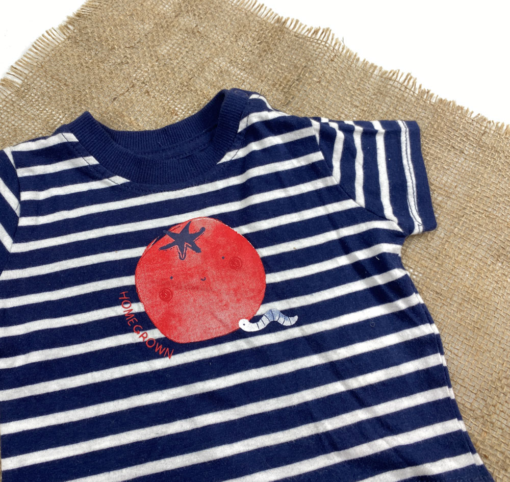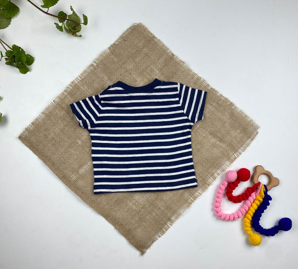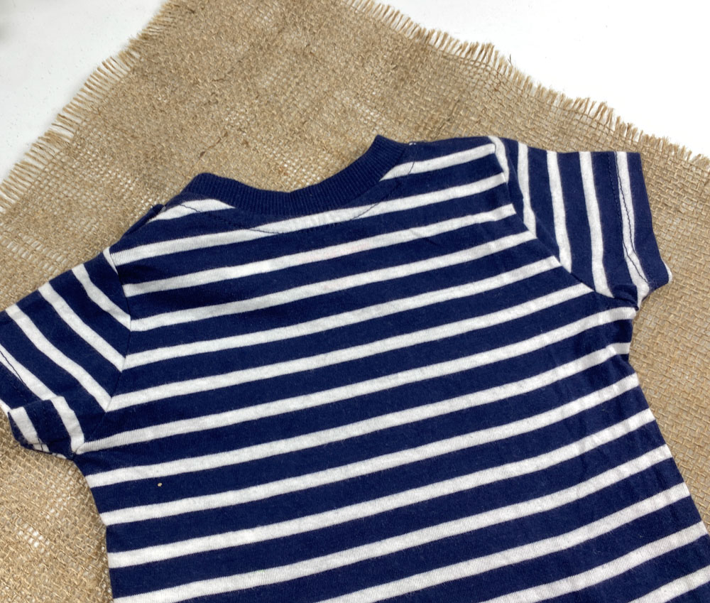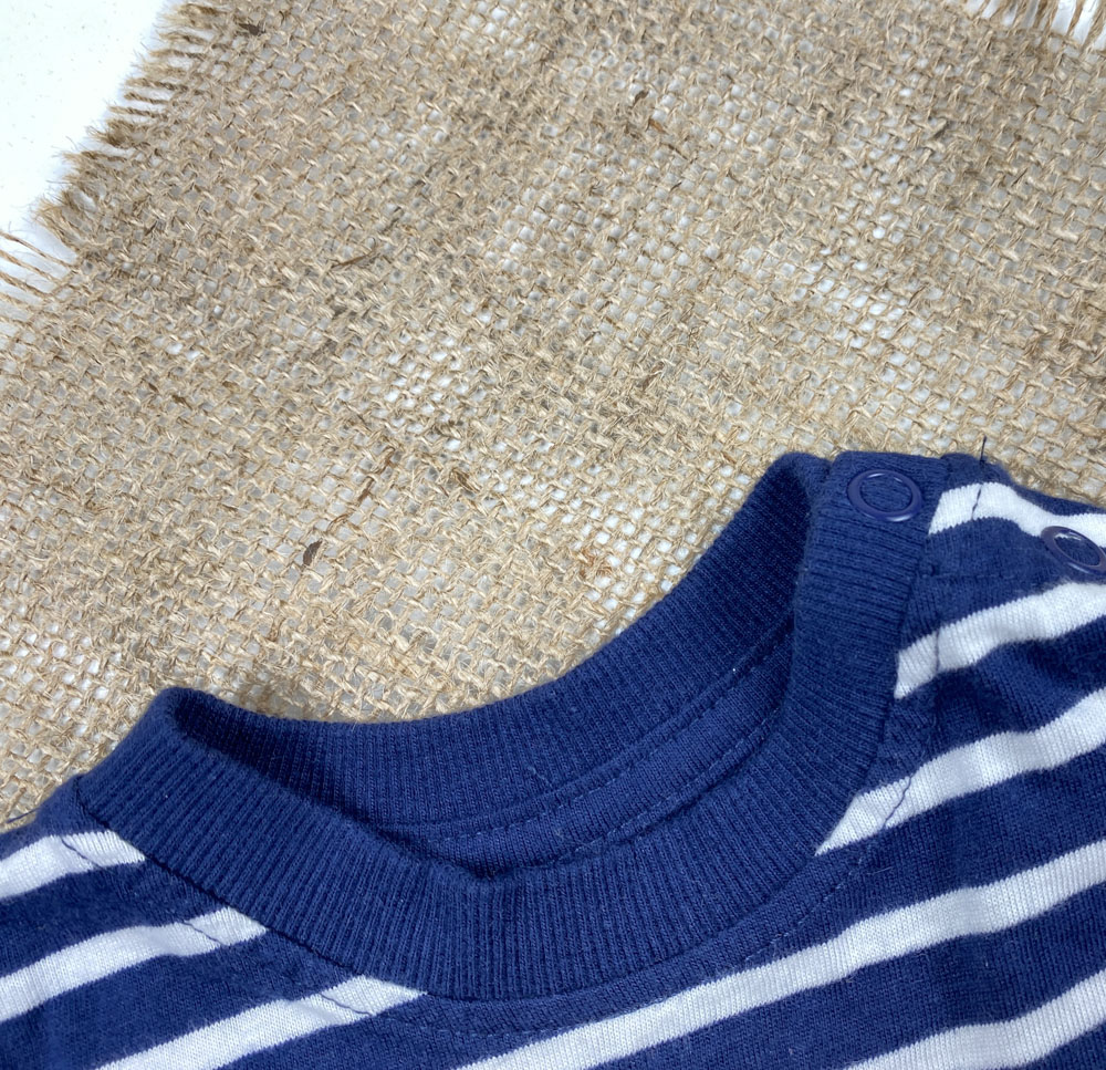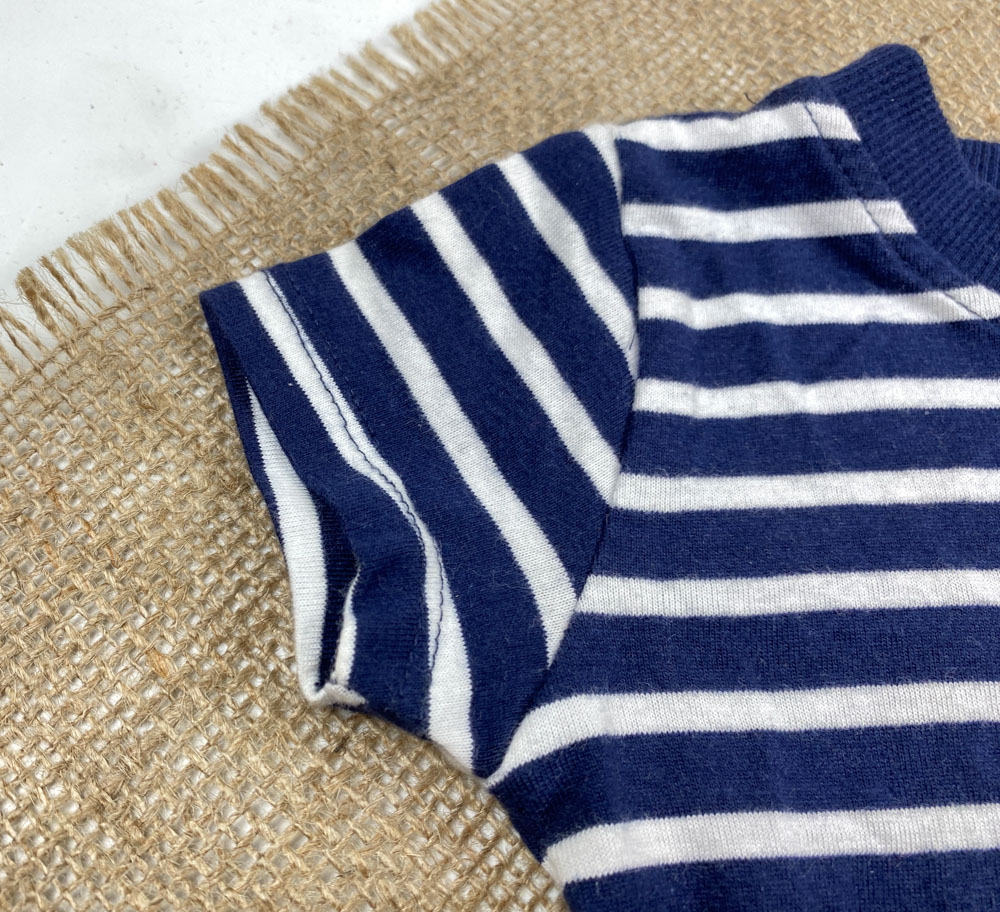 تیشرت نوزادی آستین تاپ برند لوپیلو طرح یقه گرد دکمه دار راه راه گوجه سرمه ای رنگ – 0 تا 2 ماه