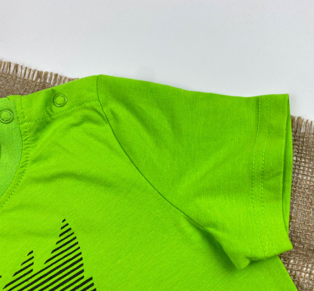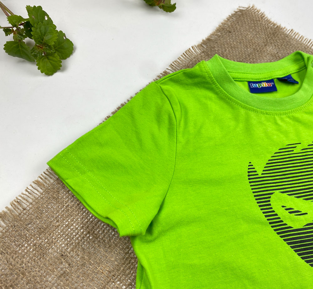 تیشرت نوزادی آستین کوتاه برند لوپیلو طرح یقه گرد دکمه دار صورت عینک دار سبز روشن رنگ – 12 تا 24 ماه