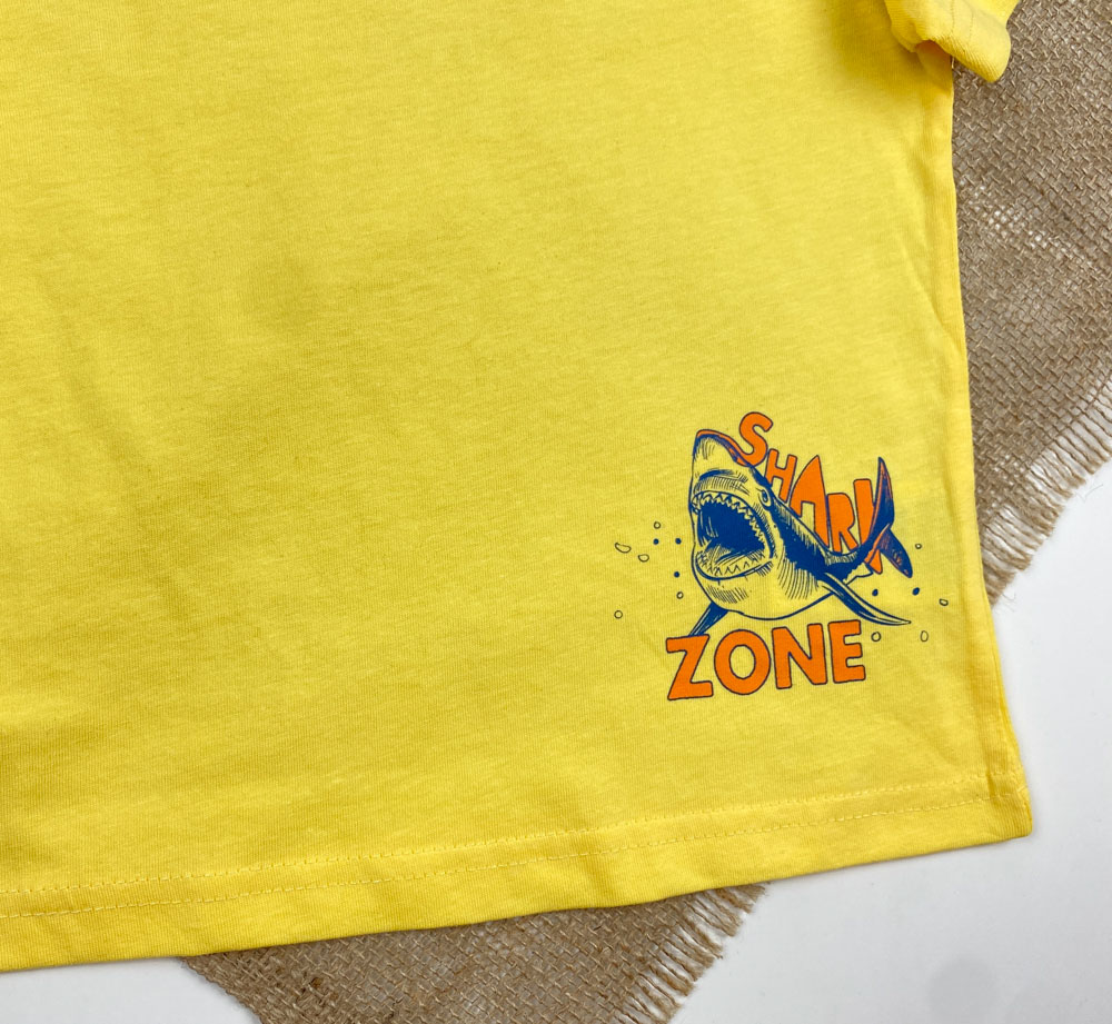 تیشرت نوزادی آستین کوتاه برند لوپیلو طرح یقه گرد دکمه دار کوسه لیمویی رنگ – 12 تا 24 ماه