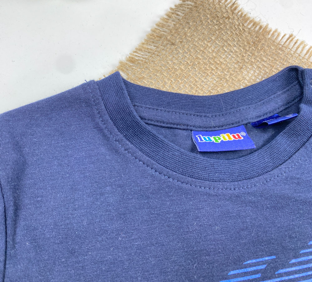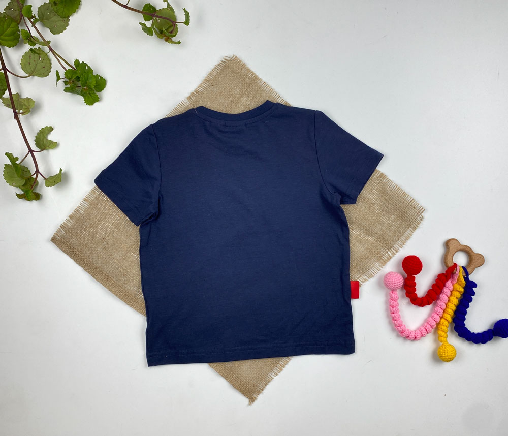تیشرت نوزادی آستین کوتاه برند لوپیلو طرح یقه گرد دکمه دار صورت عینک دار سرمه ای رنگ – 12 تا 24 ماه