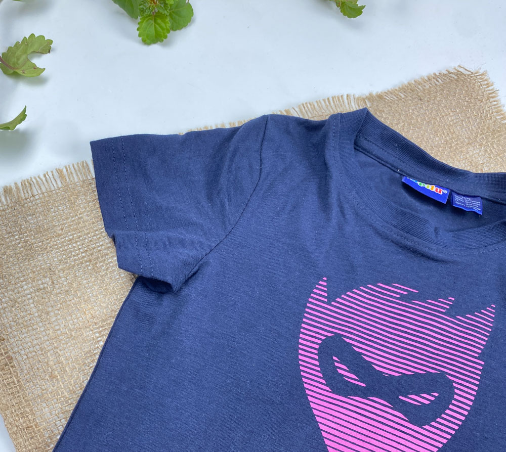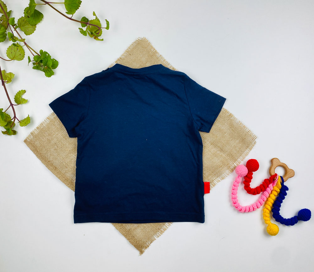 تیشرت نوزادی آستین کوتاه برند لوپیلو طرح یقه گرددکمه دار صورت عینک دار سرمه ای رنگ – 12 تا 24 ماه
