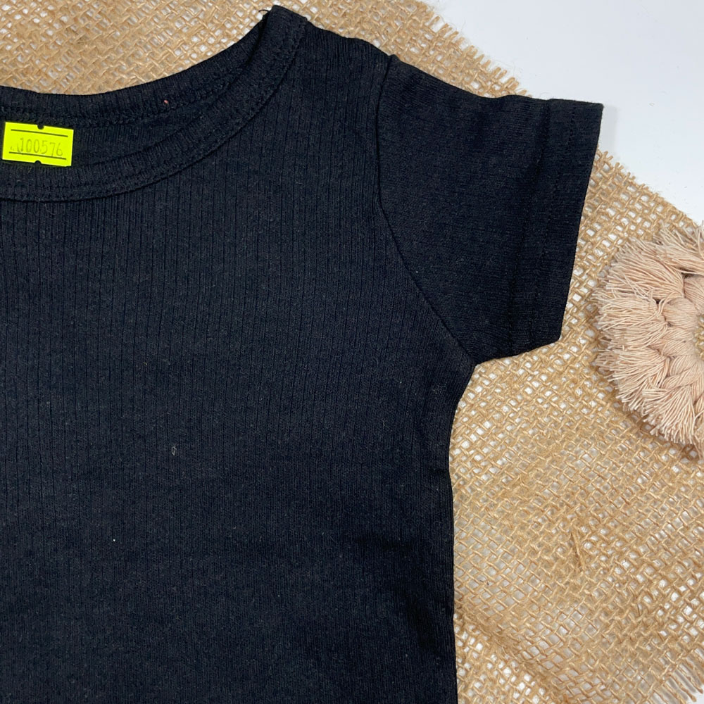 تیشرت نوزادی دخترانه آستین استین دار طرح ساده مشکی رنگ – 3 تا 6 ماه