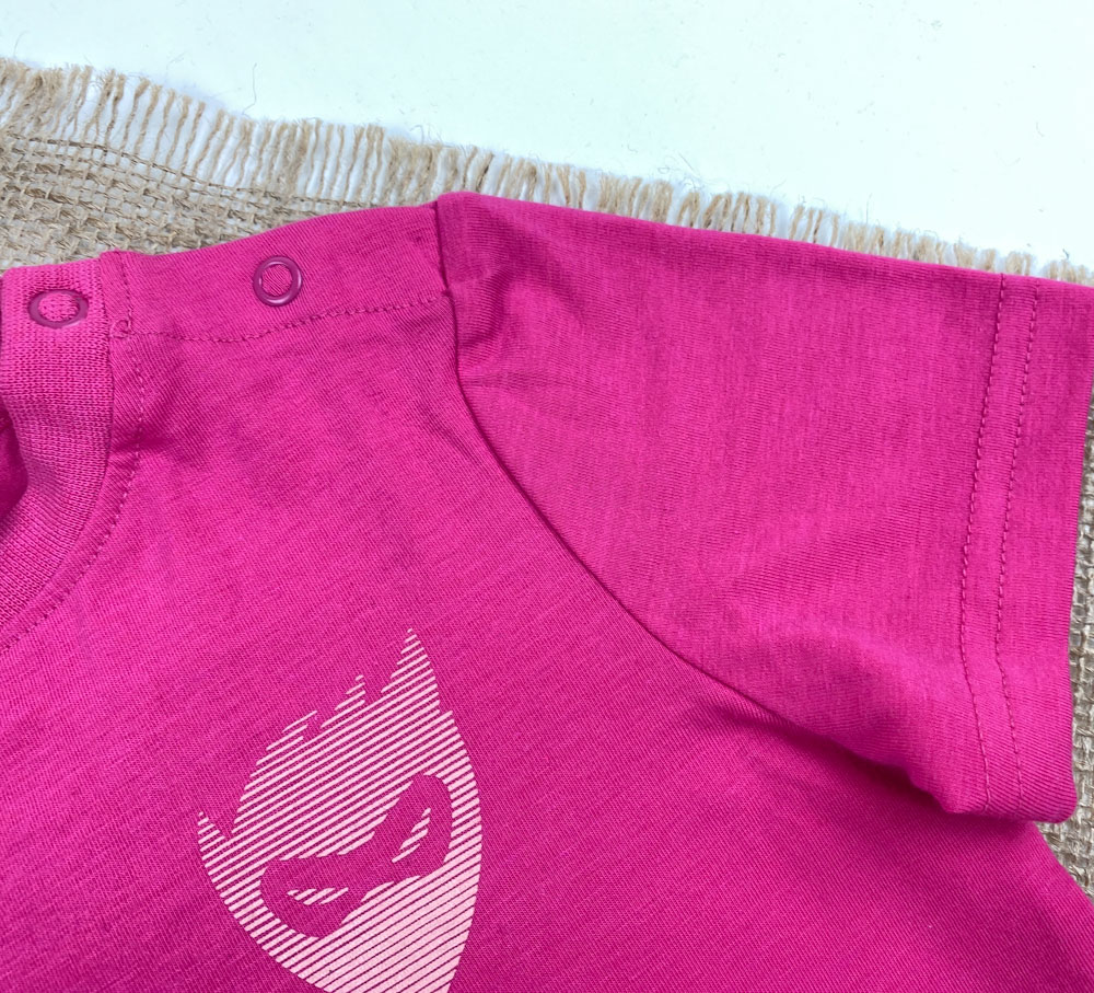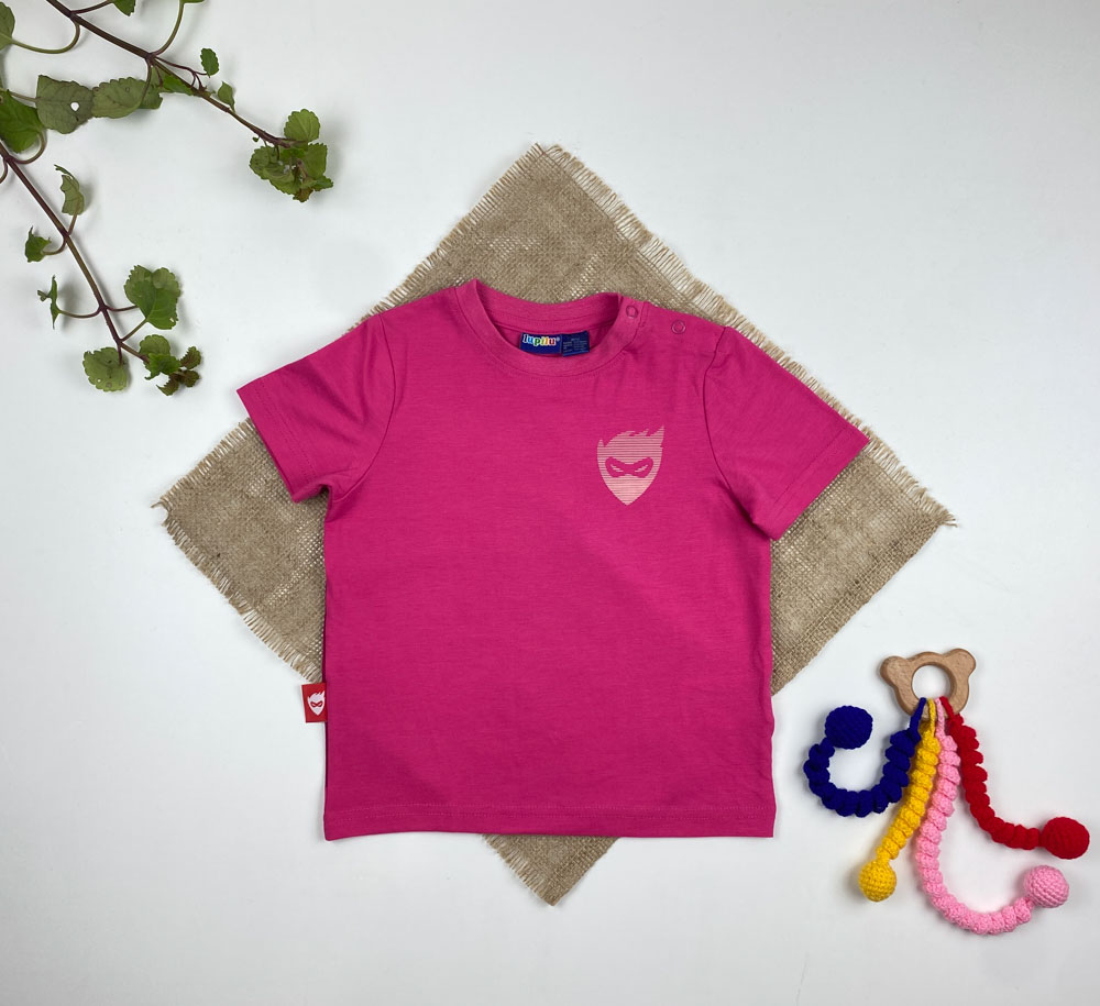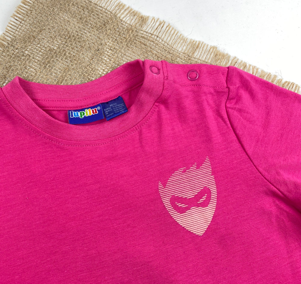 تیشرت نوزادی دخترانه آستین کوتاه برند لوپیلو طرح یقه گرد دکمه دار صورت عینک دار سرخآبی رنگ – 12 تا 24 ماه