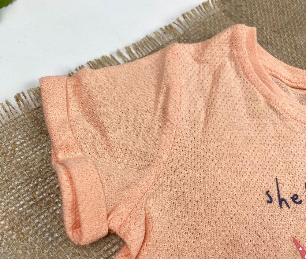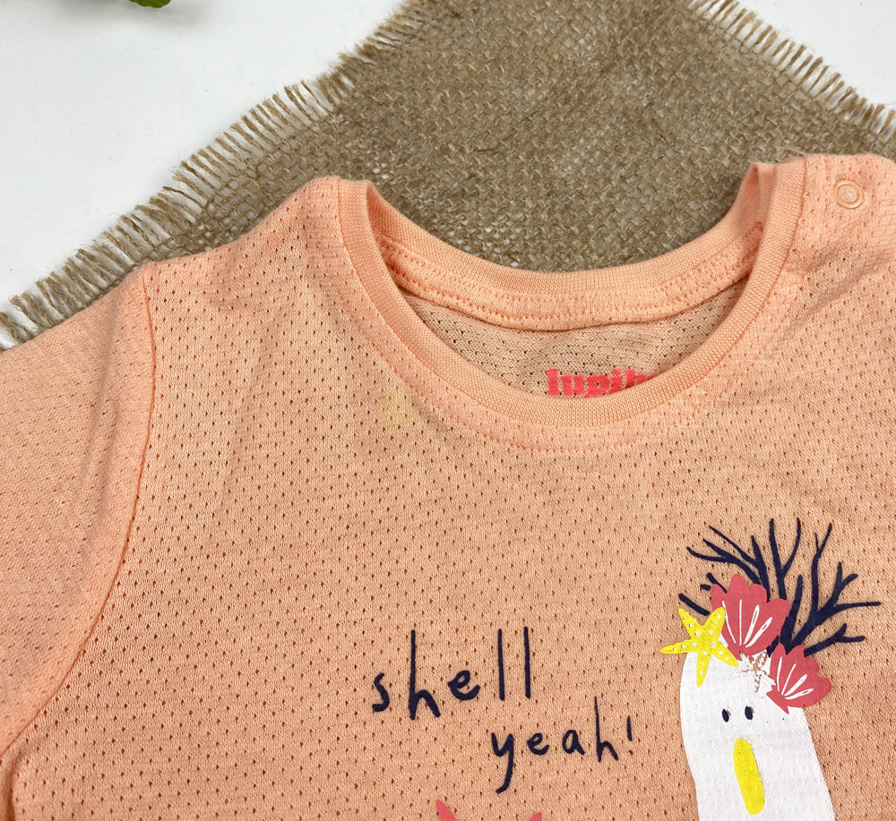 تیشرت نوزادی دخترانه آستین کوتاه برند لوپیلو طرح یقه گرددکمه دار مرغآبی گلبهی رنگ – 12 تا 24 ماه